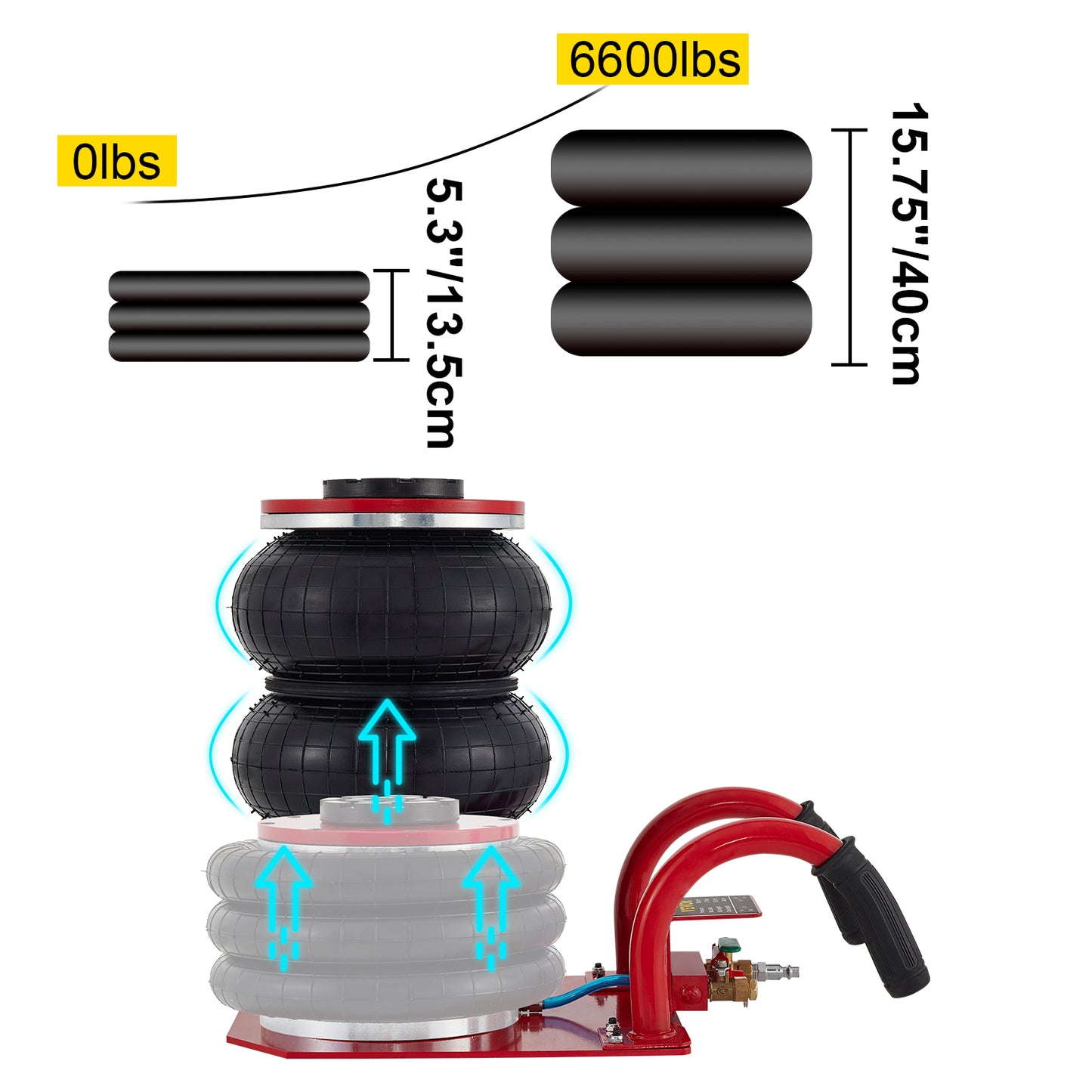Advanced Pneumatic Car Jack: 2/3 Ton Double/Triple Bag Air Jack for Swift Lifting - Ideal for Vans, SUVs, and Car Repairs