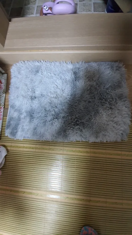 The carpet's initial appearance might be less fluffy due to compression from folding and packaging. However, this can be effortlessly resolved by giving the carpet a good shake, restoring its plush and fluffy state as depicted in the picture.