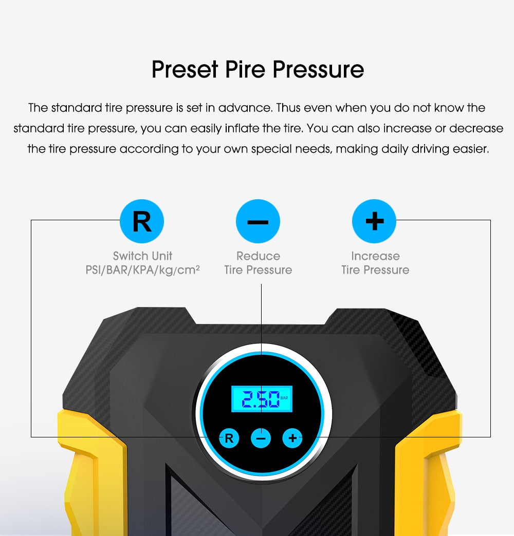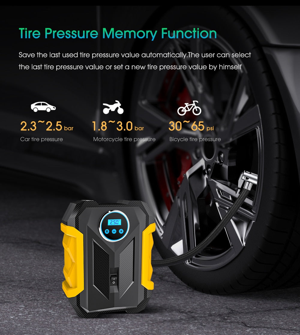 CARSUN Portable Automobile Air Compressor Digital Tire Inflation Pump LED Lamp Tire Compression Pump Compressor For Car Motorcy