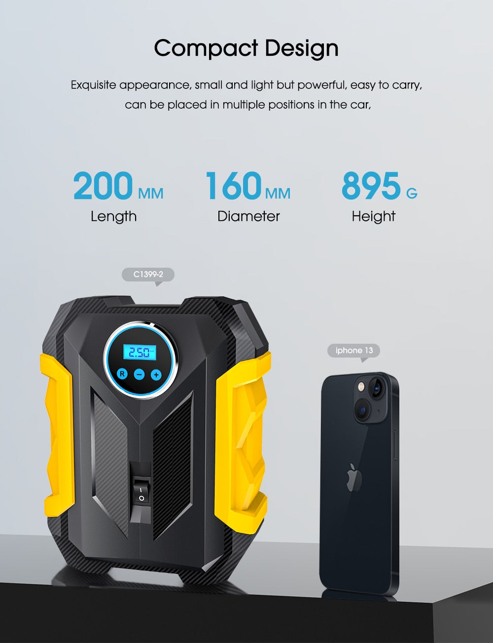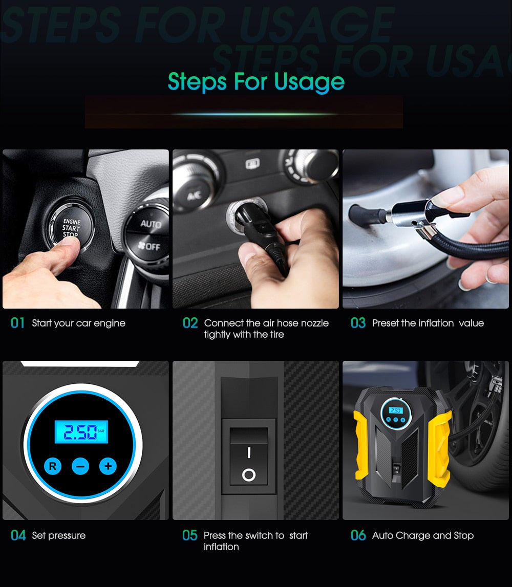 CARSUN Portable Automobile Air Compressor Digital Tire Inflation Pump LED Lamp Tire Compression Pump Compressor For Car Motorc