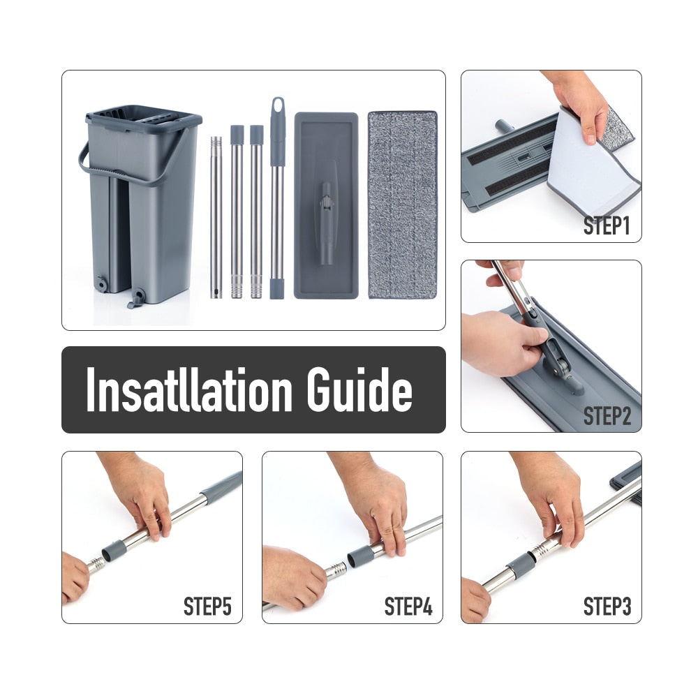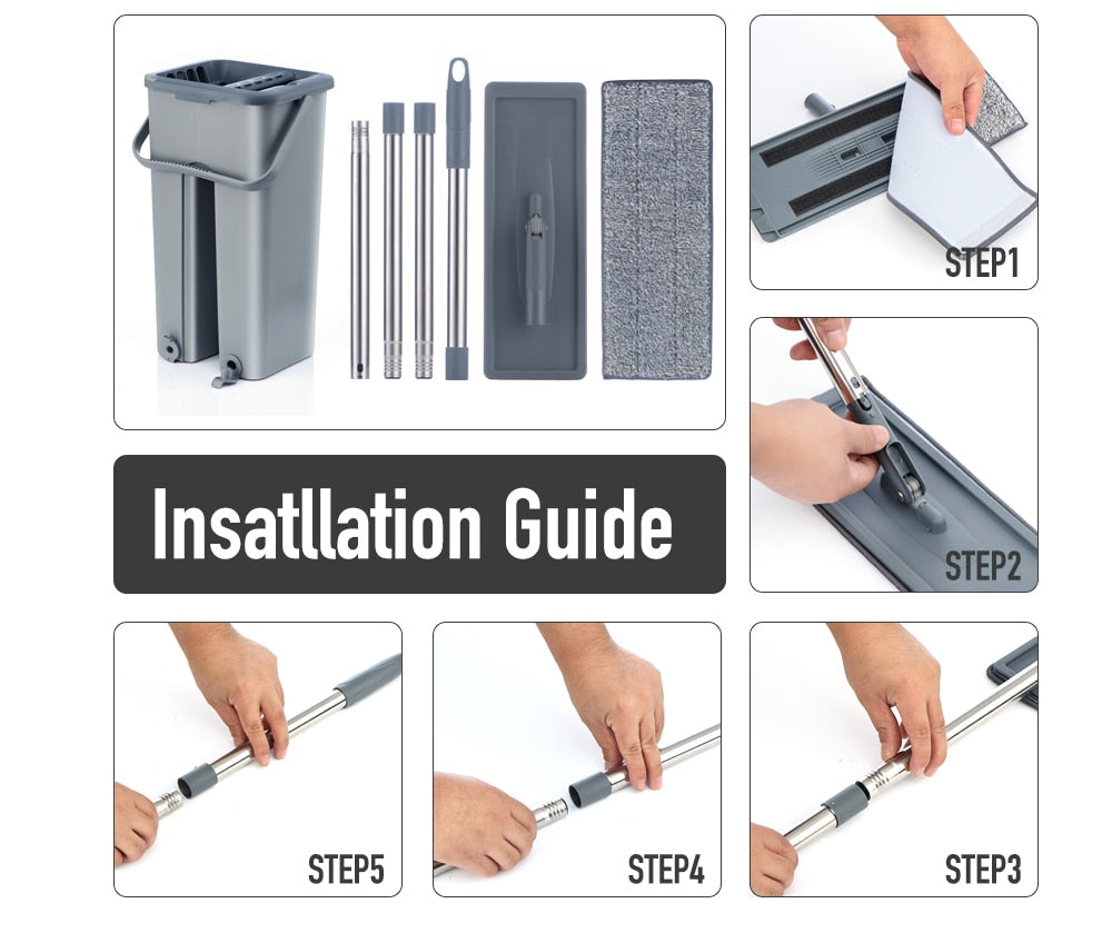 【EASY TO INSTALL AND SPACE SAVING】: The Mops for floor cleaning system can be easily stored in the corner of your house, a small volume. Easy to install and organize, you can put it wherever you want, will save a lot of space. Make your life better.