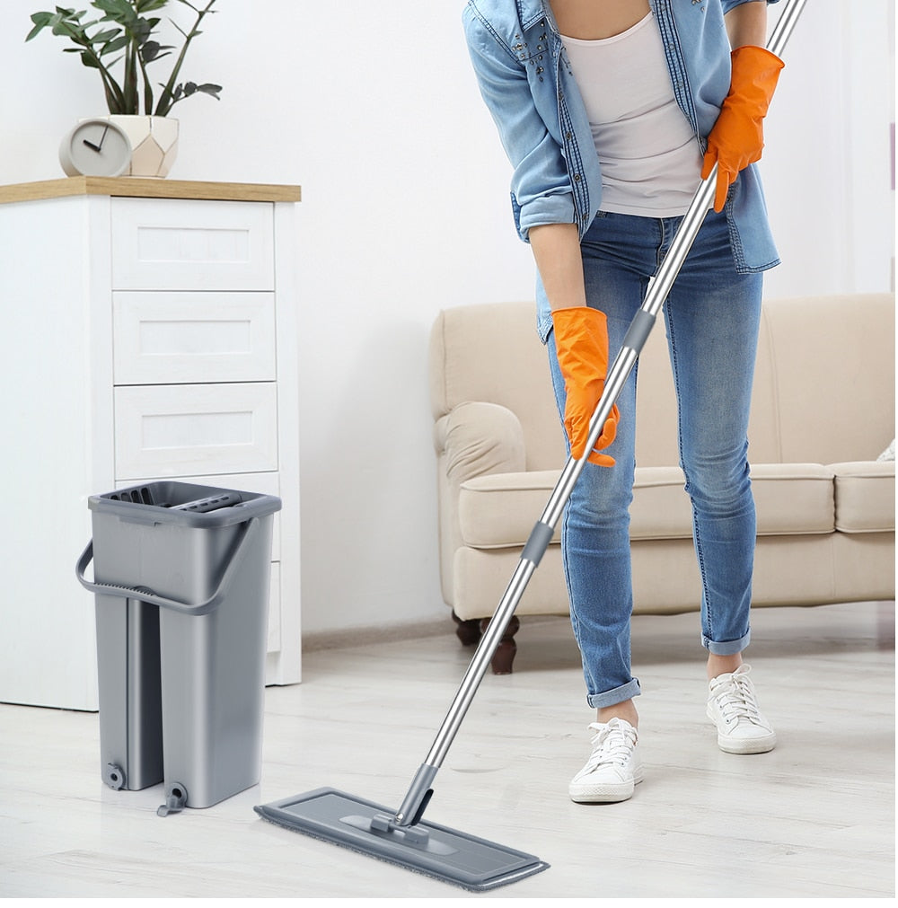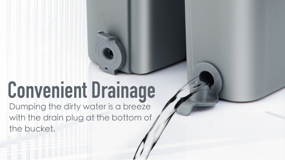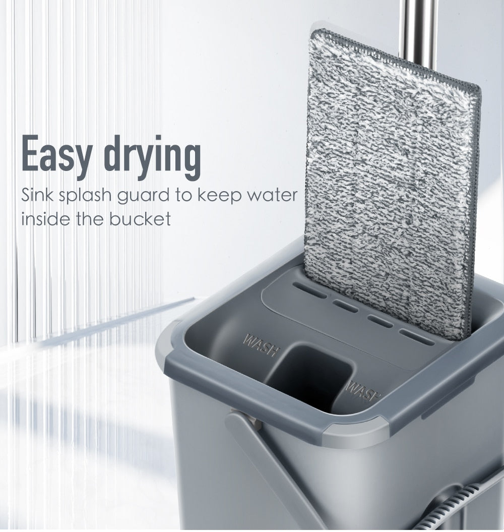 【UPGRADE 2-IN-1 DRY&WET HANDS-FREE SQUEEZE】: The wood floor doesn't like water. While our bucket can get the mop dry enough to work your floors. With 2 convenient grooves for wet and dry, it only takes several seconds to wash and dry the mop. Meanwhile, a dust mop bucket set can keep your hands from dirt.