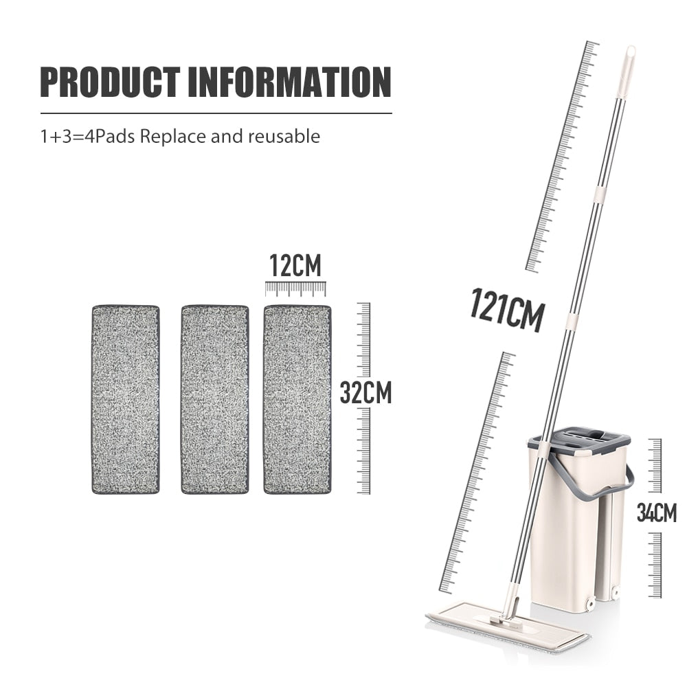 Hands-Free Flat Mop and Bucket Set with Reusable Microfiber Pads - Professional Home Floor Care for Hardwood and More