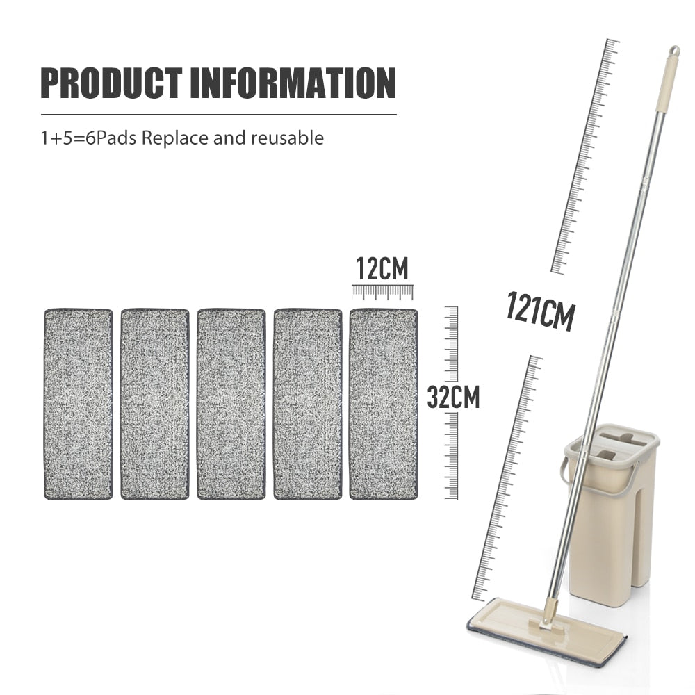 【QUALITY 6 REUSABLE PADS&EXTENDED HANDLE】: This floor cleaning system includes 6 reusable&washable microfiber mop refills, which absorb water quickly, and remove dust, hair, and oil stain easily. With an adjustable stainless steel handle, can extend to 130cm( avoiding your back pain. Easy to clean the corners you want in a home, durable and long-life quality hardwood floor cleaner mop.