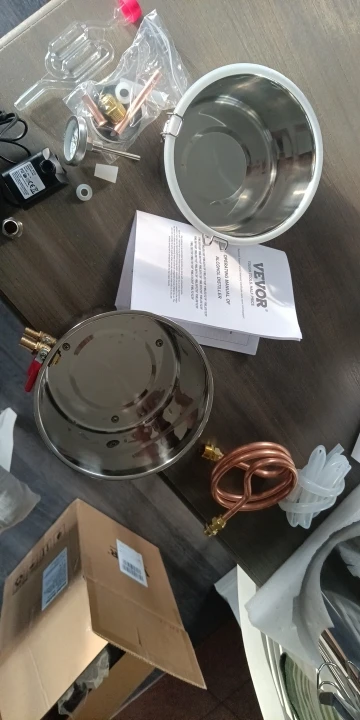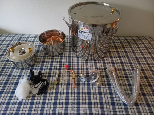 Package Contents 1 x Fermentation Barrel 1 x Condenser Barrel 1 x Thumper Keg 1 x Thermometer 1 x Water Circulating Pump 1 x One-way Air Evacuation Valve 1 x Accessories 1 x Manual