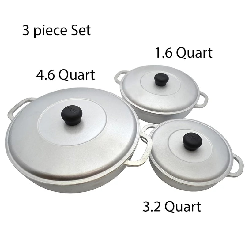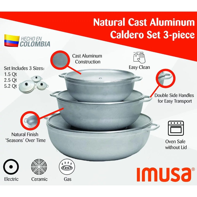 Imusa 3 Piece Colombian Cast Aluminum Caldero or Dutch Oven Set with Lid