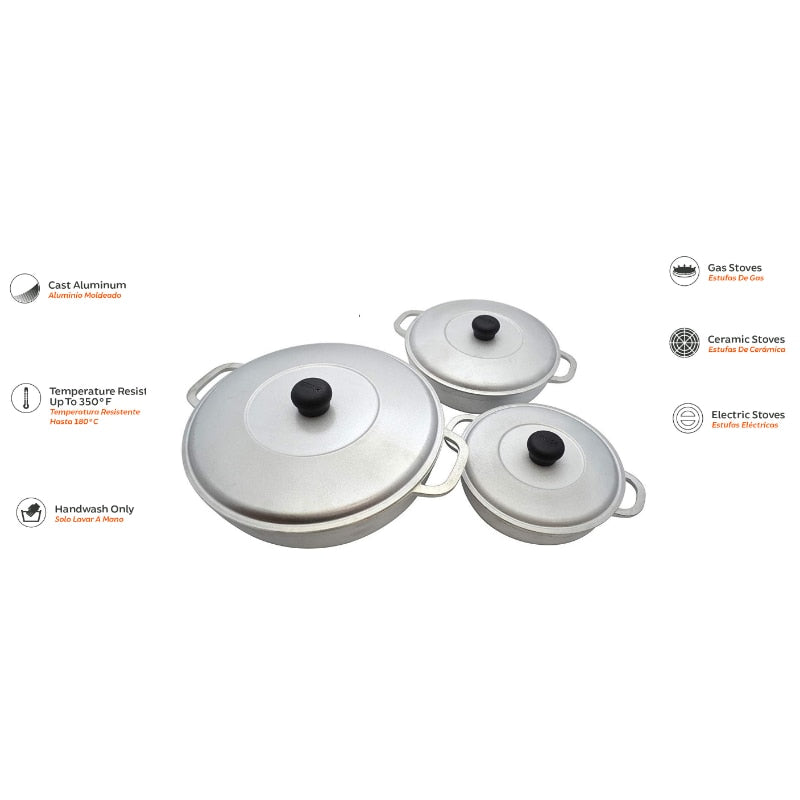 IMUSA 3Pieces Colombian Cast Aluminum Caldero or Dutch Oven Set with Lid:
