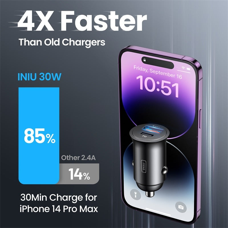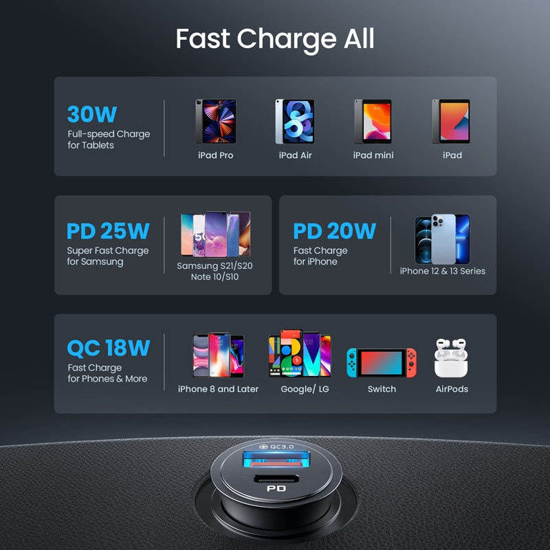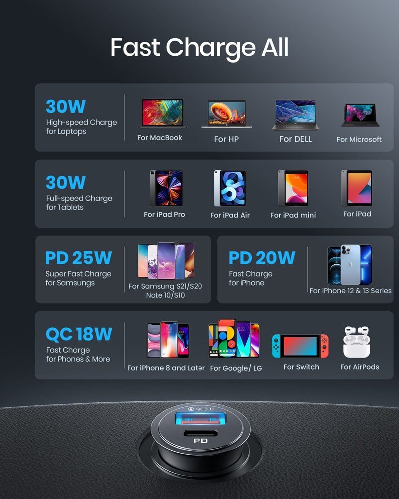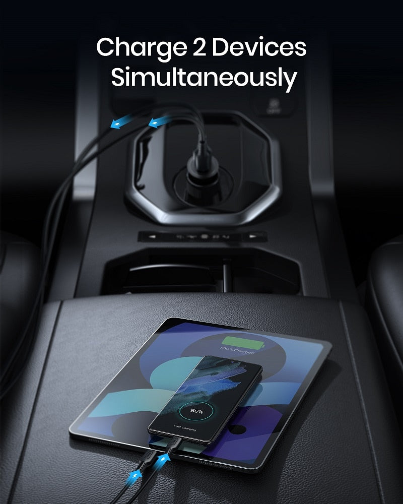 Feature 2: Dual Port PD Car Fast Charger; Fast Charging
