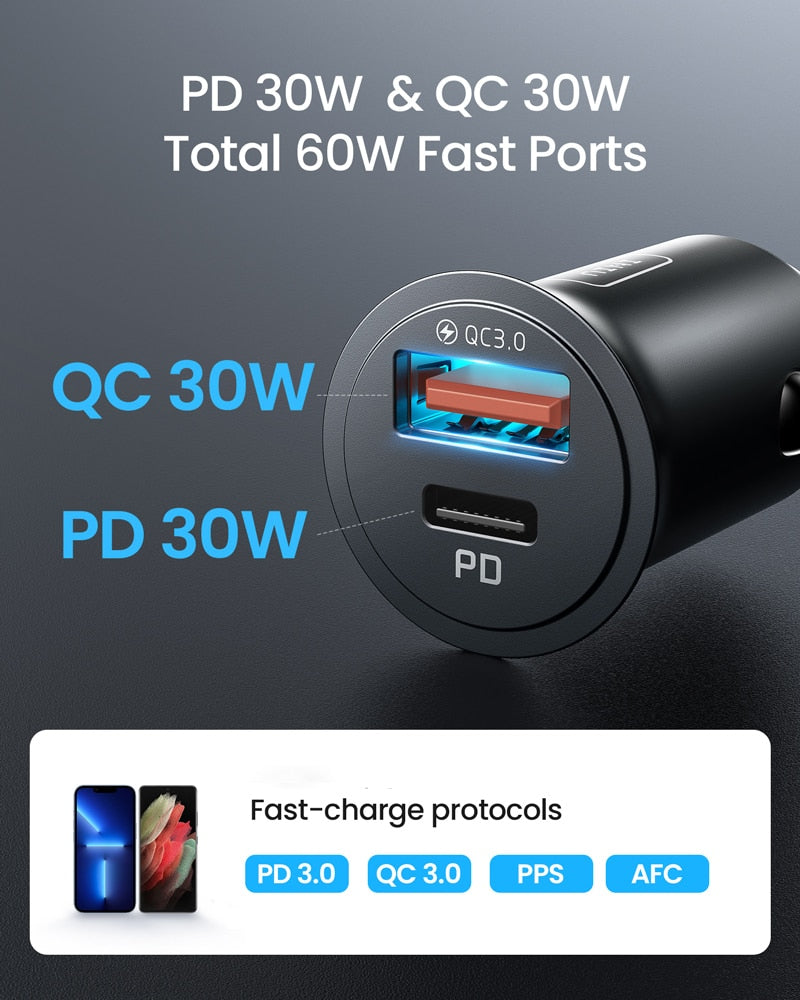 Feature 1: [60W Total] 5A QC 3.0 PD Fast Charge Car Charger