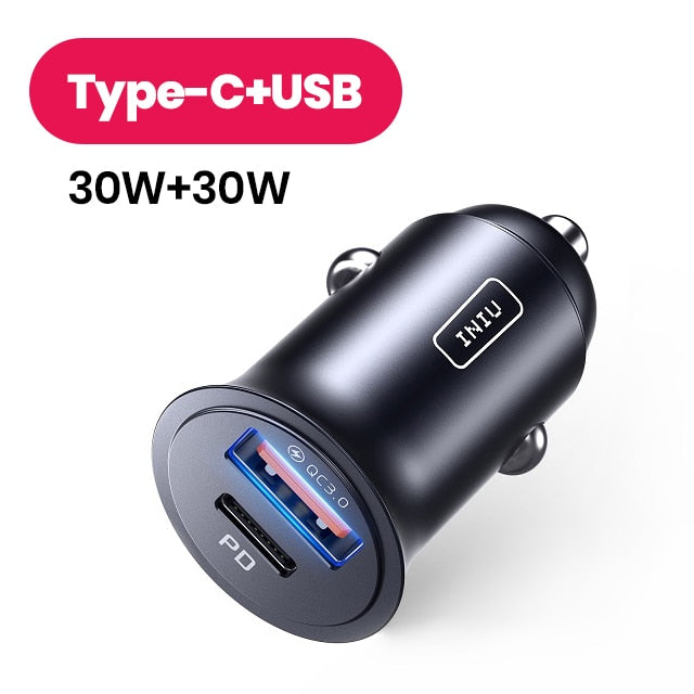 INIU 60W USB Car Charger 5A Type C PD QC Fast Charging Phone Adapter For iPhone 14 13 12 11 Pro Max 8 Xiaomi Samsung S21 S20 S10