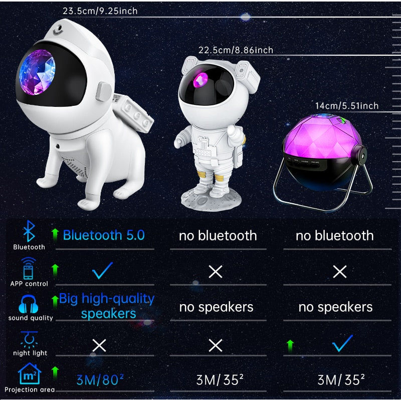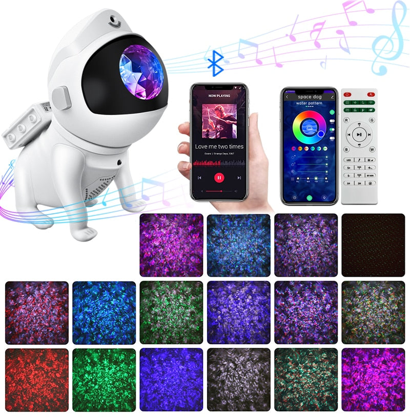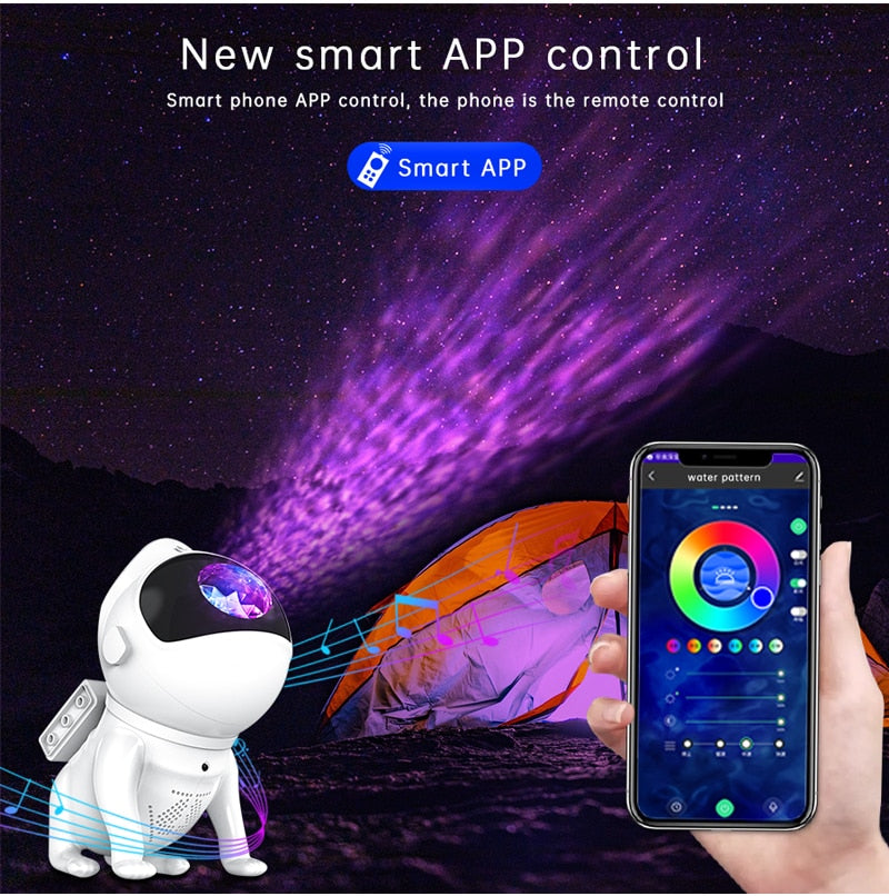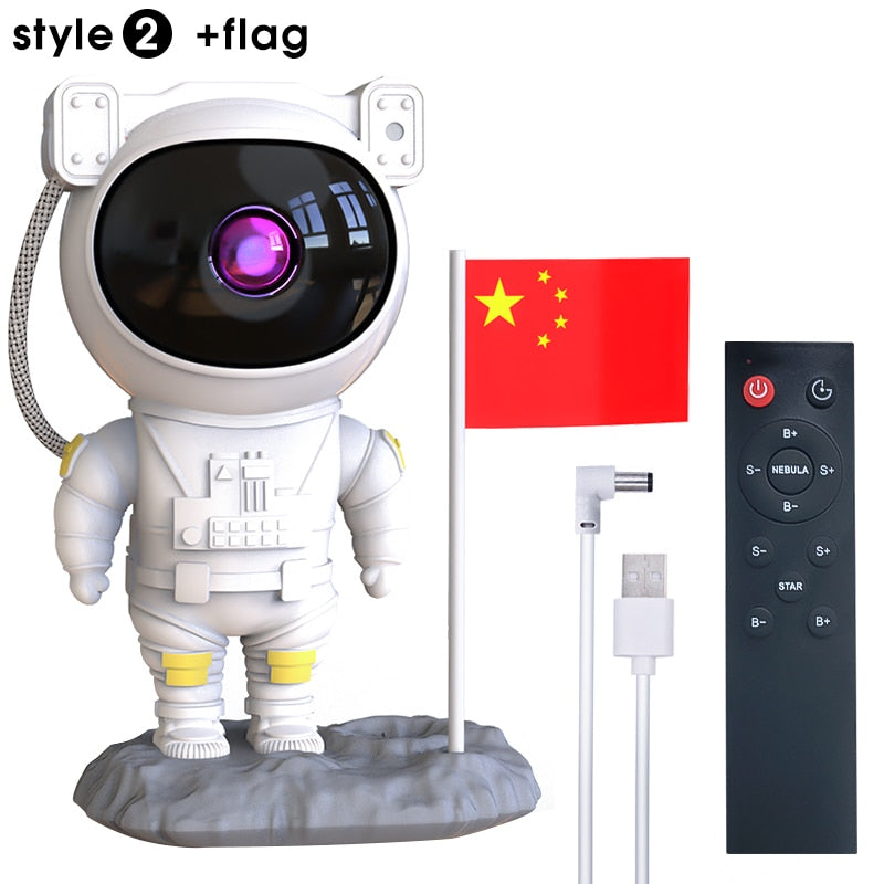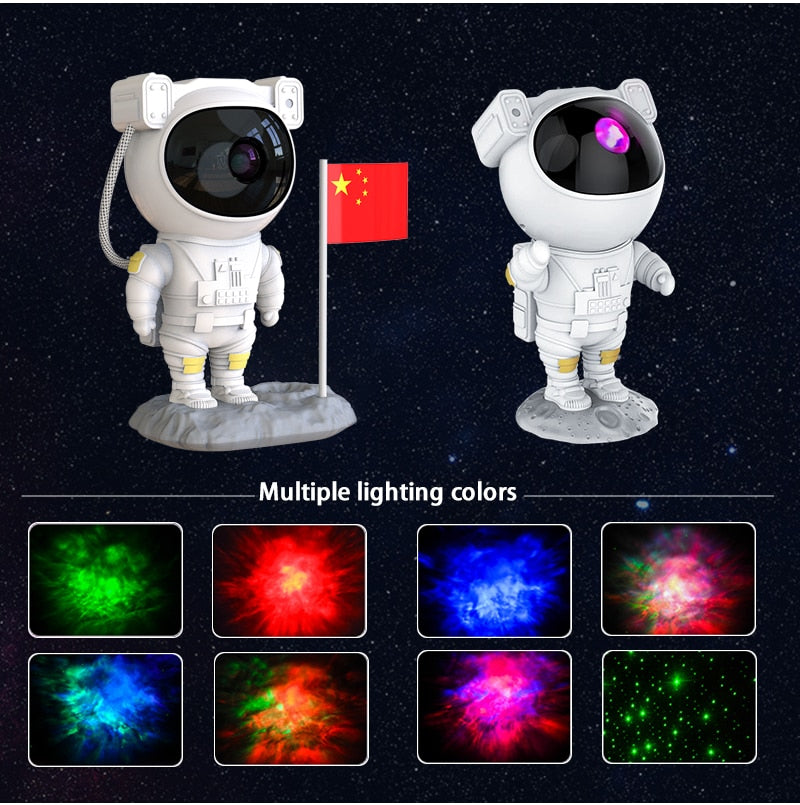 Innovative and Distinctive Design: Featuring an astronaut-inspired appearance, this light echoes the celestial theme, sparking curiosity for cosmic exploration. The astronaut's head boasts a 360° rotatable magnetic design, enabling versatile nebula projections. Its detachable lunar base and movable arms allow creative poses, doubling as an intriguing decorative element.