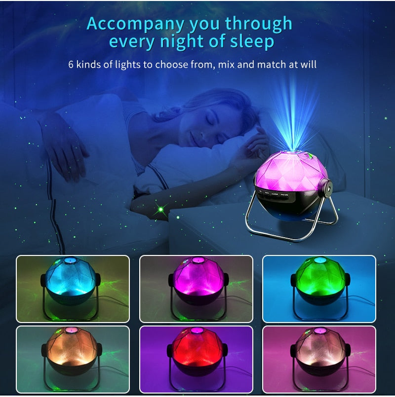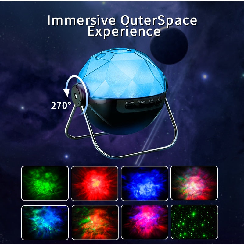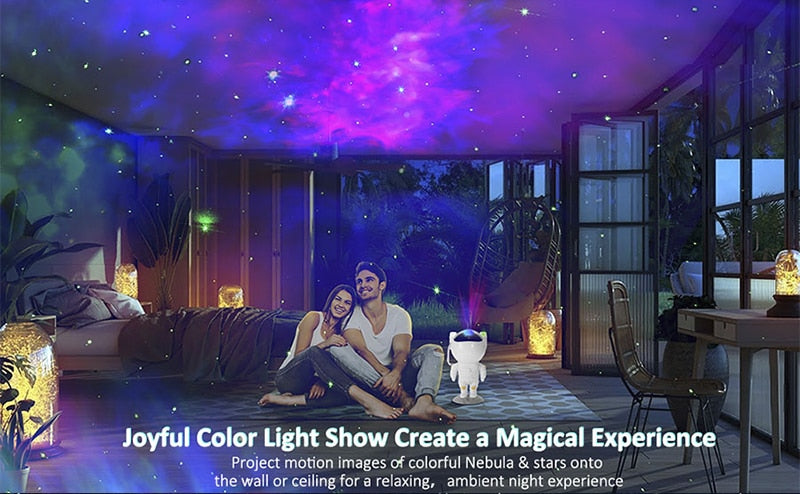 Astronomical Nebula and Star Projector: Experience the mesmerizing charm of an ever-changing colorful nebula paired with twinkling starlights. This projector offers a remote or button-operated switch for different color combinations. It projects a captivating high-definition starry galaxy on walls and ceilings, immersing you in a cosmic realm, ideal for setting a romantic ambiance and unwinding.