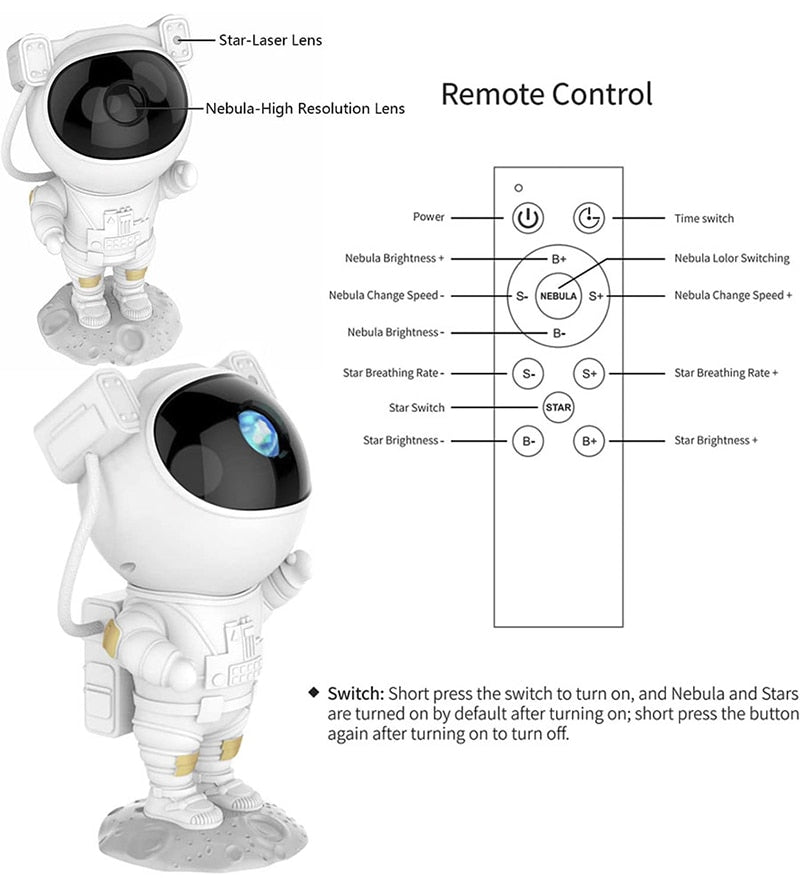 Kids Star Projector Night Light with Remote Control - 360° Adjustable Design for Enchanting Astronaut Nebula Galaxy Lighting, Perfect for Children and Adults