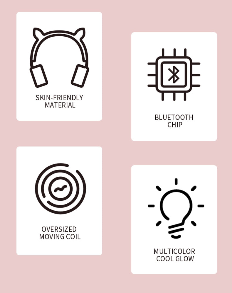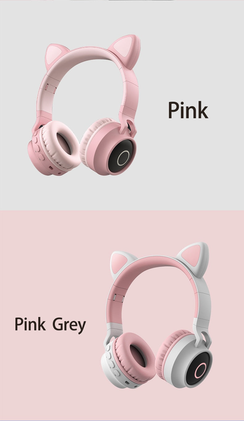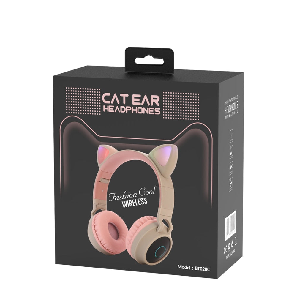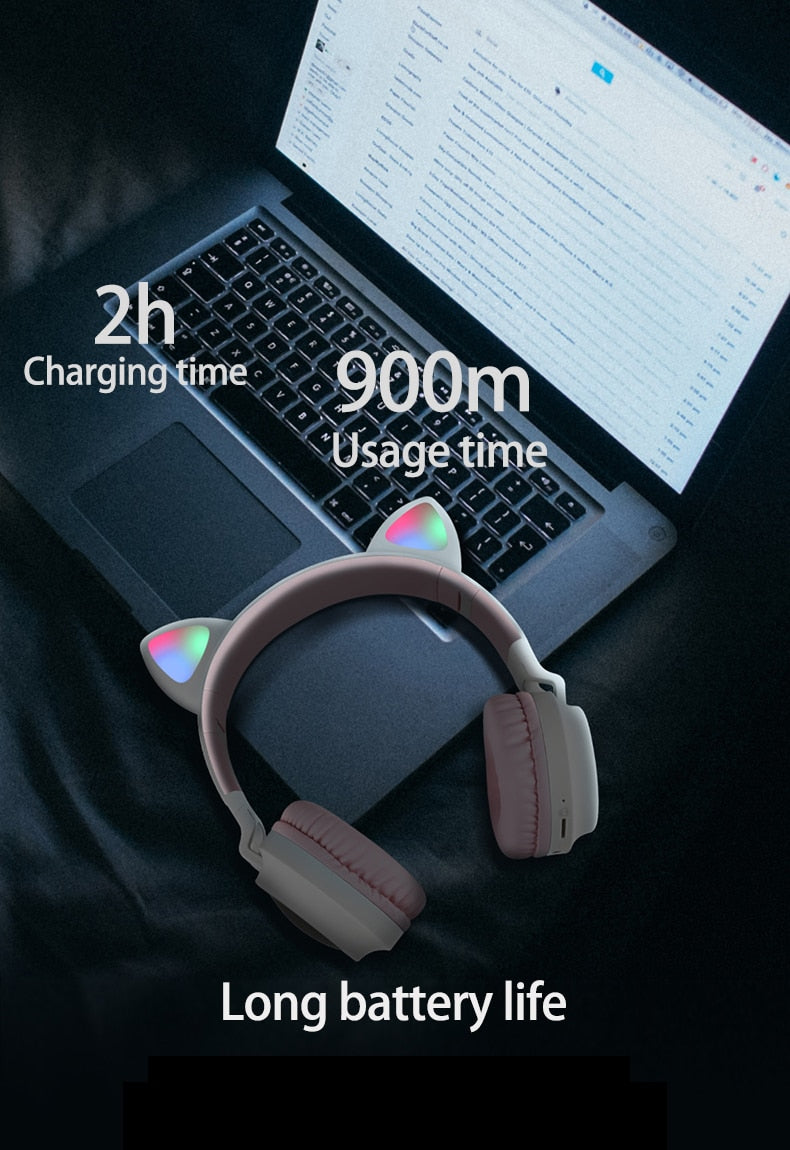 LED Light Wireless Headset with Cat Ear Design - Music Headphones for Girls, Daughters, Bluetooth Headset with TF Card Support and FM Radio