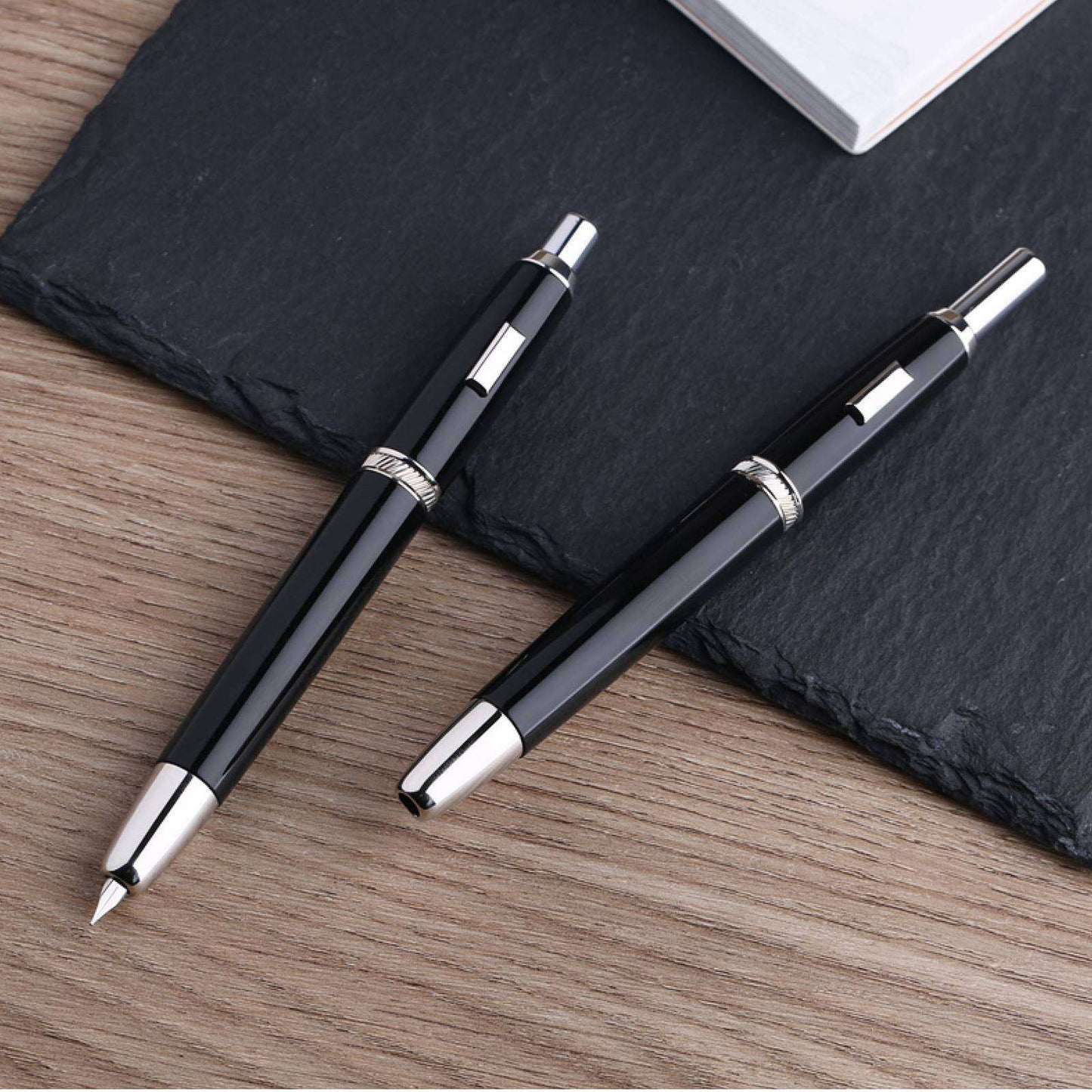 New Piano Black MAJOHN A1 Press Fountain Pen Retractable Extra Fine Nib 0.4mm Metal Ink Pen with Converter for Writing