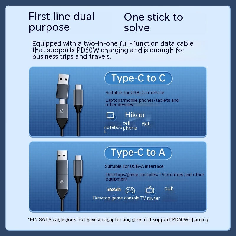 Unlock new possibilities in data management with our Notebook SSD External Enclosure! This innovative device effortlessly converts your M.2 SATA or NVMe SSDs into sleek, portable external hard drives. Whether you're working from home or on the go, this enclosure expands your storage capacity and securely backs up your important files.