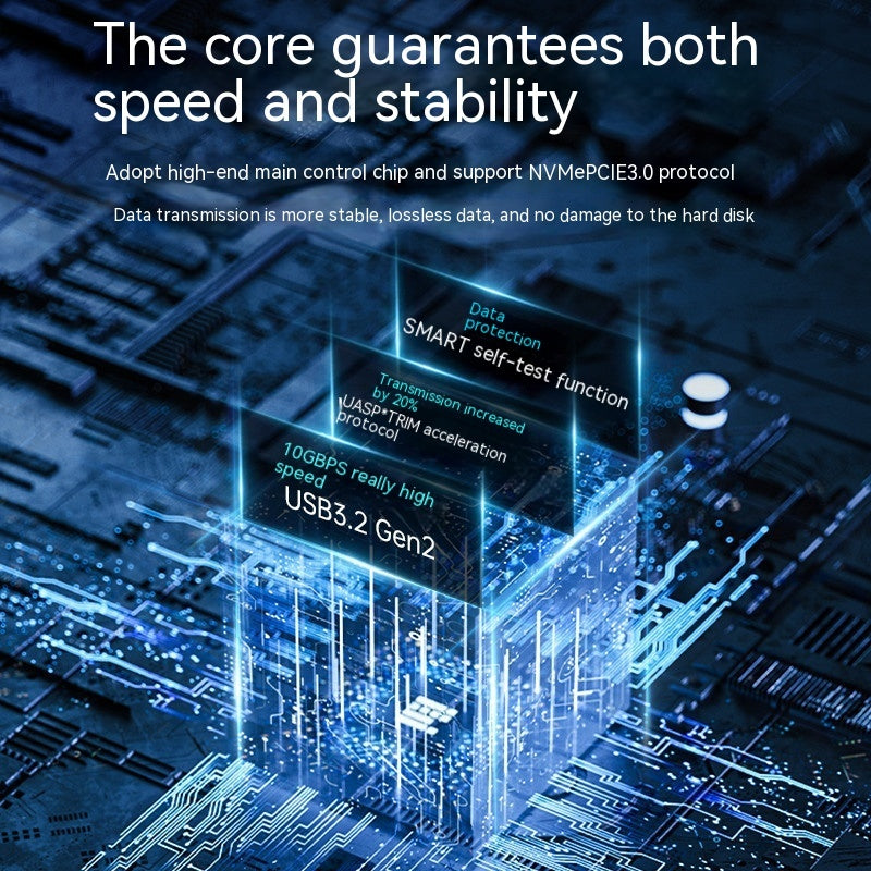 Crafted from premium aluminum alloy, this enclosure is not only robust but also designed for optimal heat dissipation. Its structure keeps your SSD cool during prolonged data transfers, significantly reducing the risk of overheating. Whether you are a busy professional or a tech enthusiast, this lightweight design offers both convenience and efficiency.