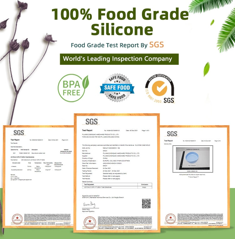 CE/EU, CIQ, LFGB, EEC, and SGS-certified, ensuring these non-toxic trays and molds meet the highest safety standards, providing you with peace of mind.