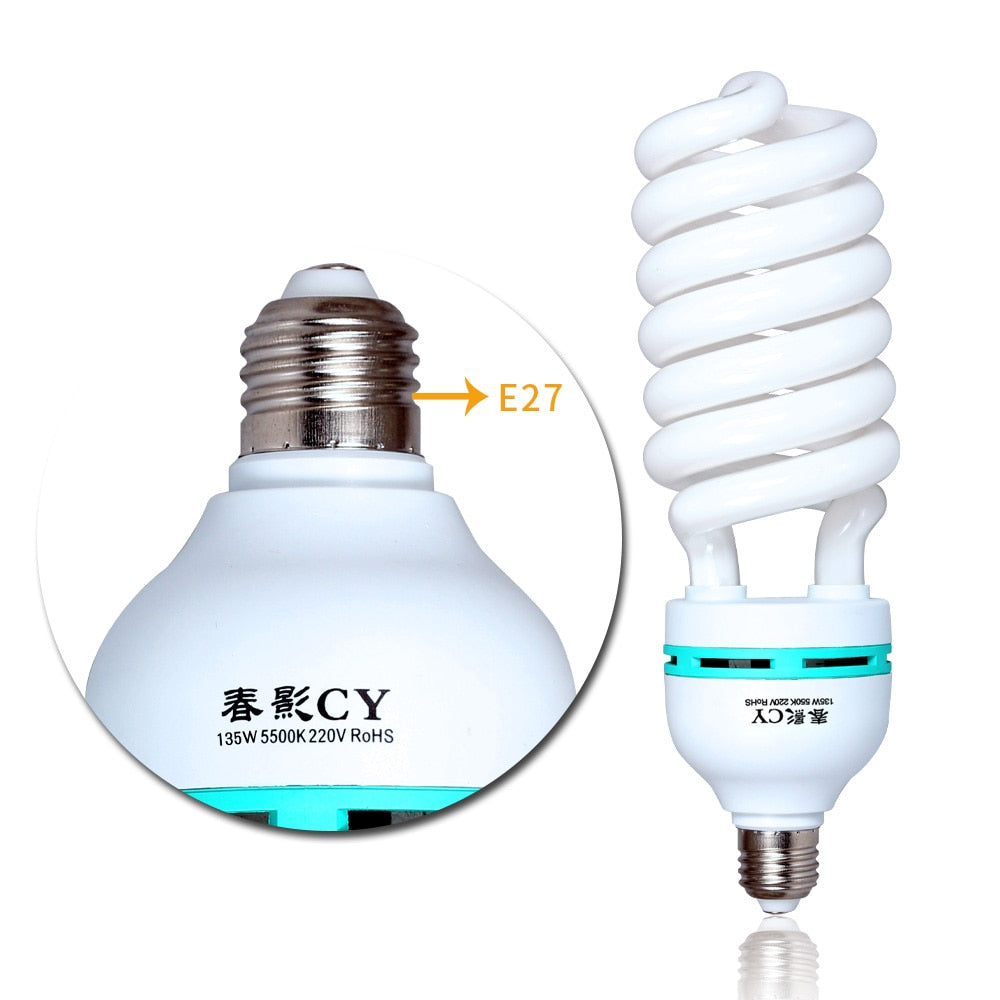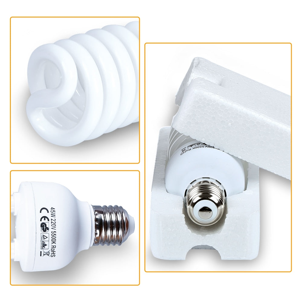 The 20W and 30W LED bulbs are noise-free and flicker-free, providing excellent photographic effects for your studio. The E27 socket makes them suitable for most standard photographic equipment. Additionally, the 135W daylight-balanced bulb delivers accurate colors for video and photography shoots.