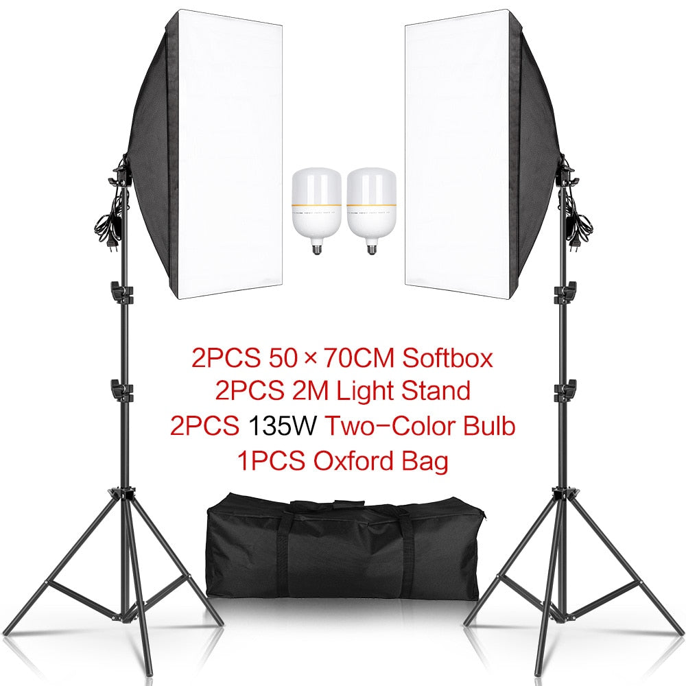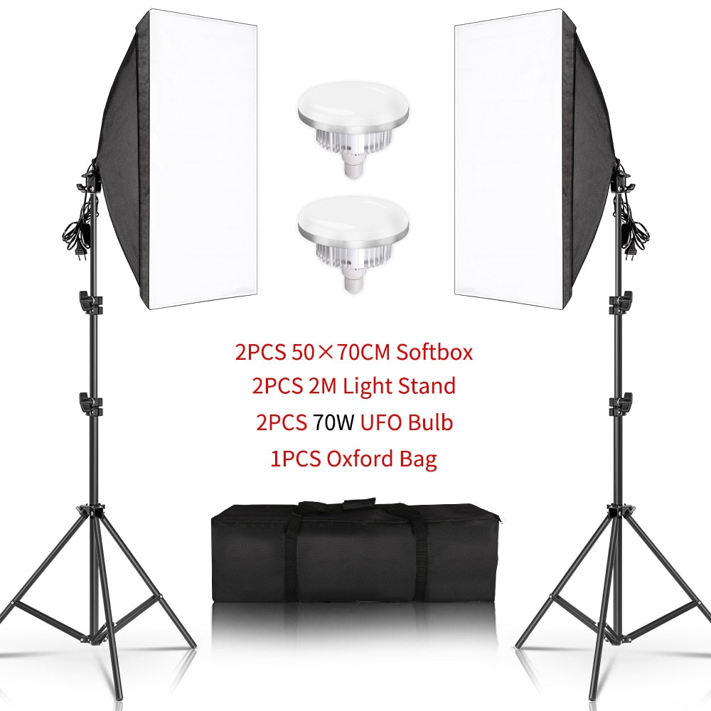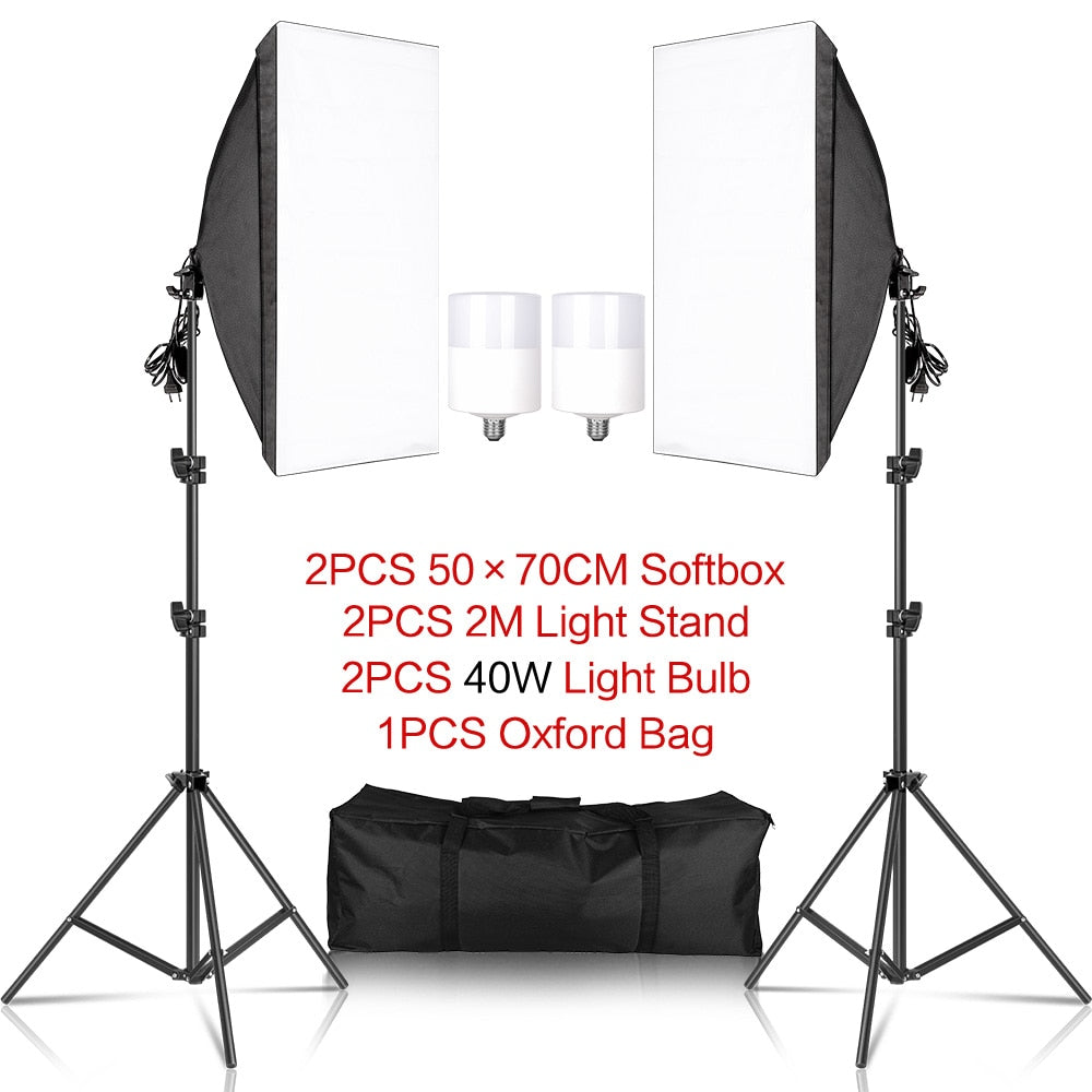 Professional Continuous Light System Equipment for Photo Studio: 50x70CM Photography Softbox Lighting Kits