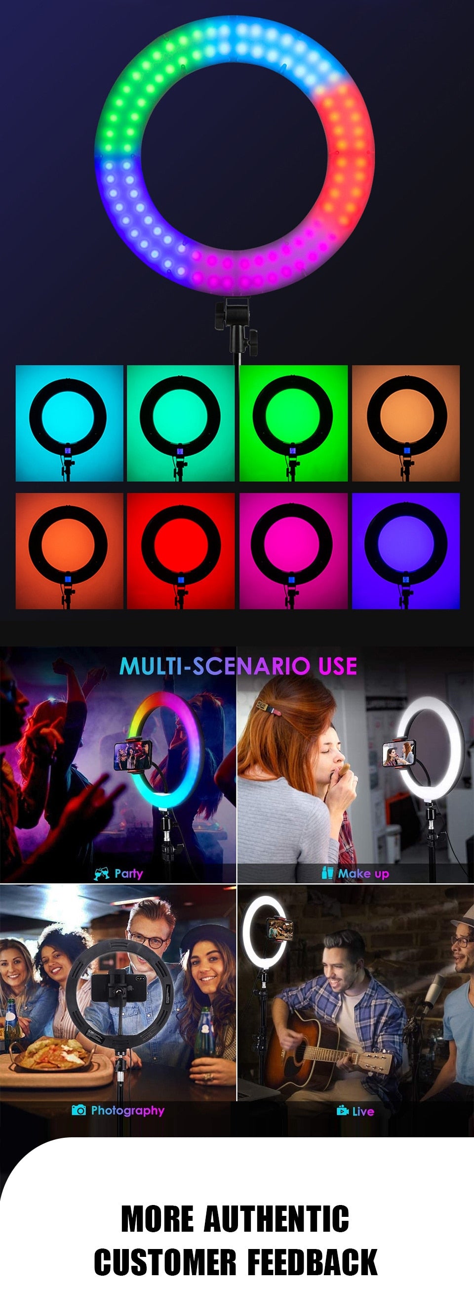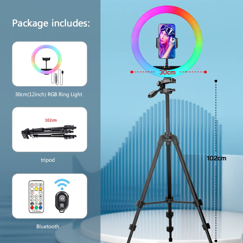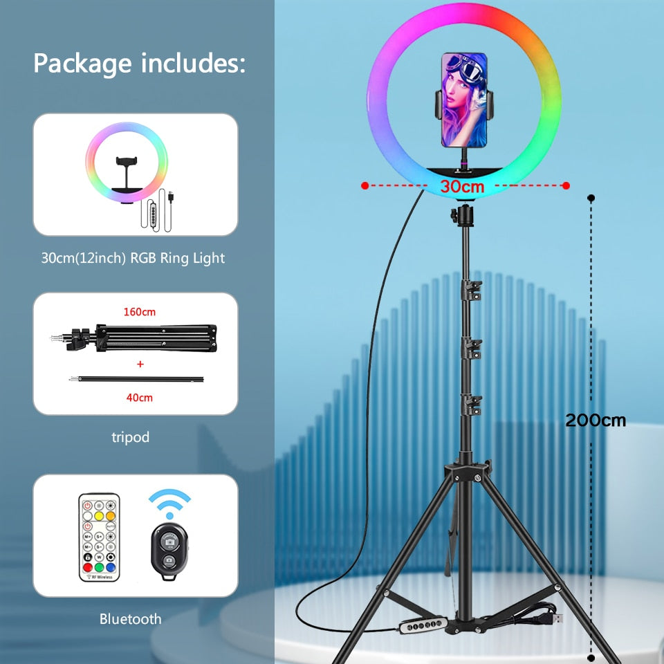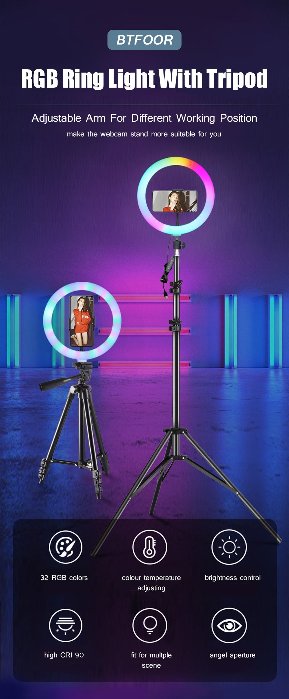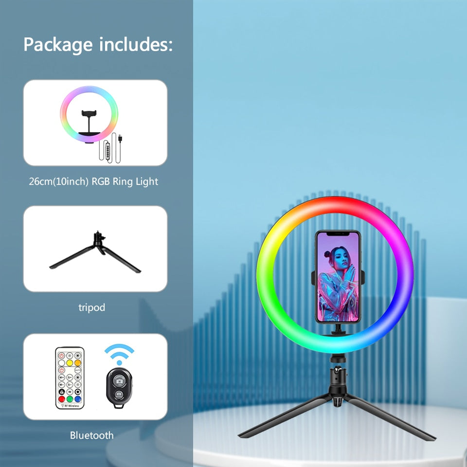 RGB Color Soft Ring Light With Desk Long Arm Tablet Tripod Photography Lighting Selfie RingLight Circle Lamp Phone Holder Stand