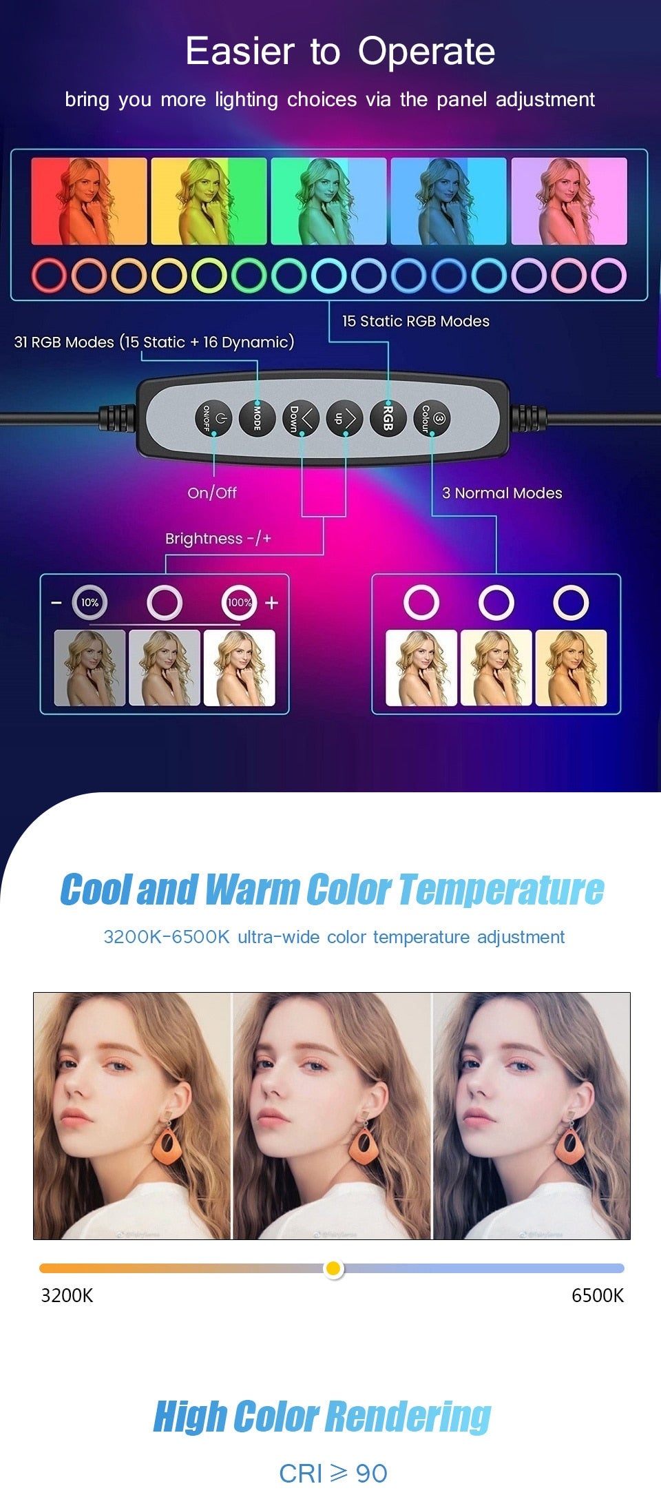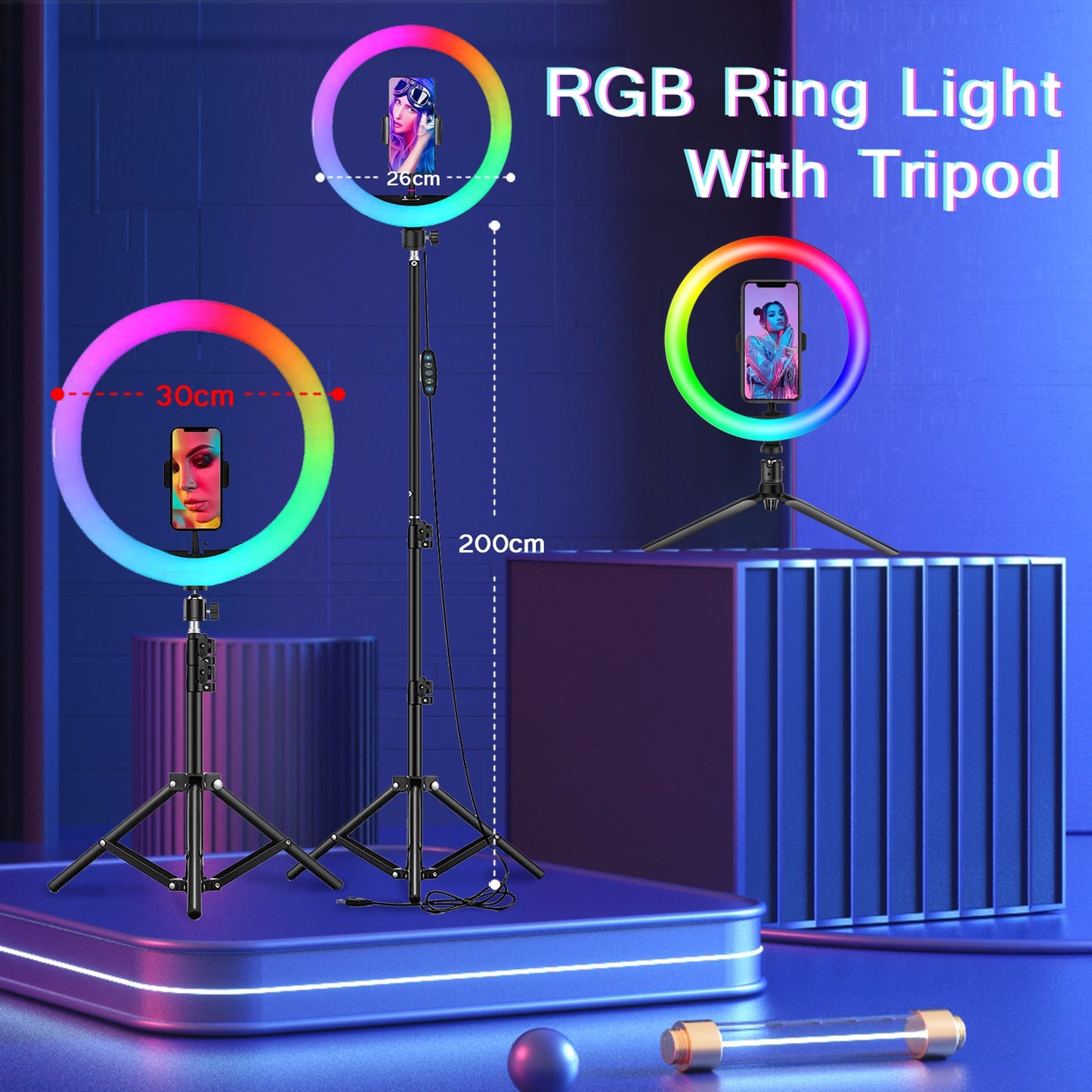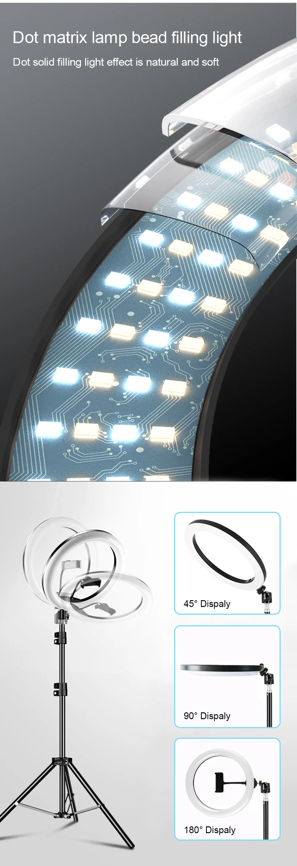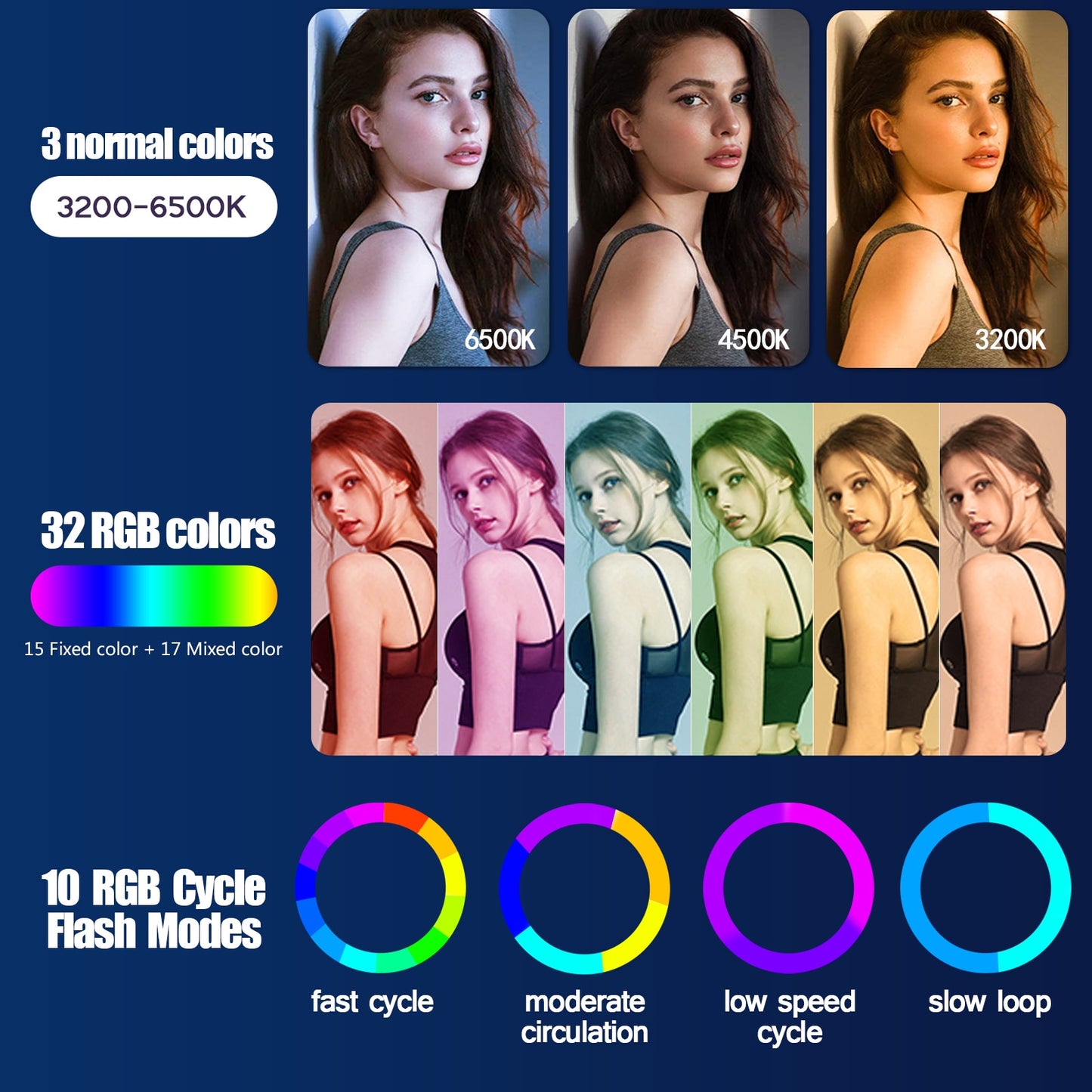 RGB Color Soft Ring Light With Desk Long Arm Tablet Tripod Photography Lighting Selfie RingLight Circle Lamp Phone Holder Stand