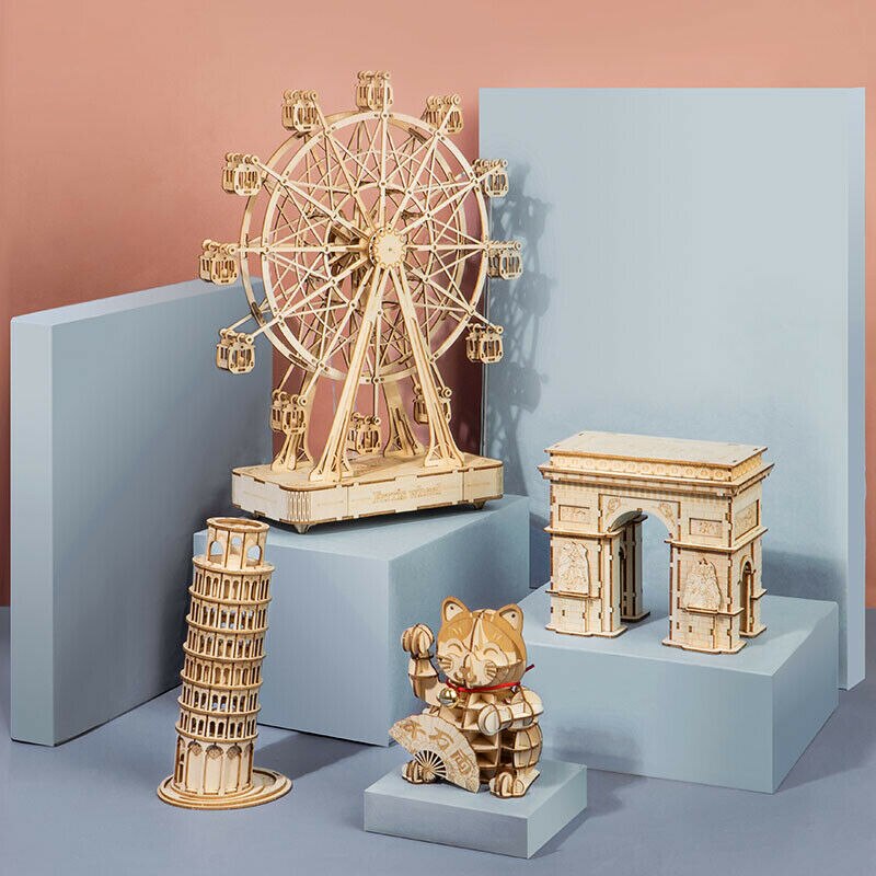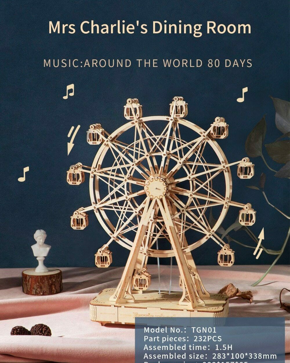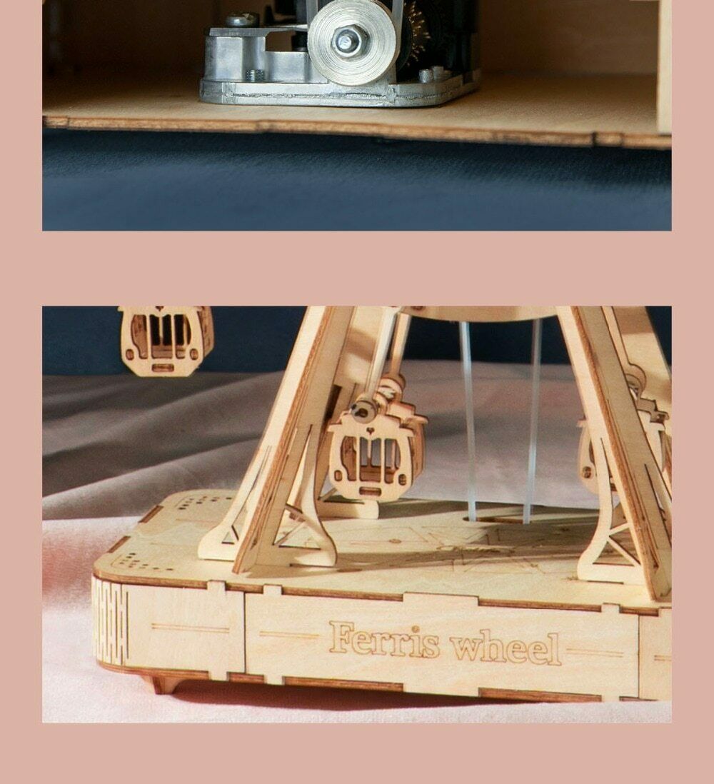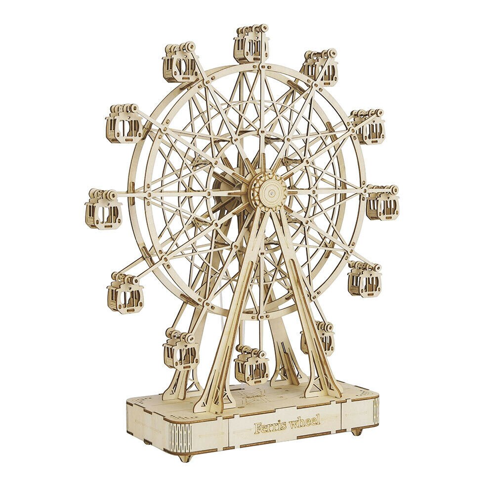 Robotime DIY Rotatable 3d Wooden Puzzle Music Box Ferris Wheel For Gifts