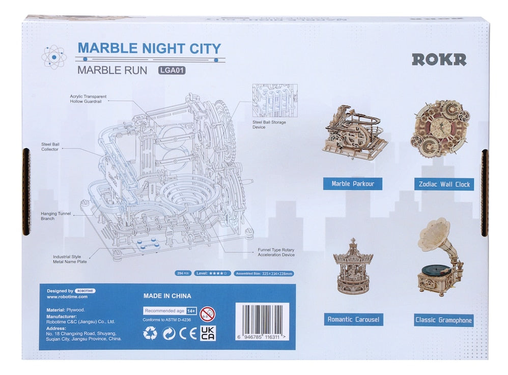 Robotime ROKR Educational 3D Wooden Puzzle Toys Marble Night City for Adults/Kids