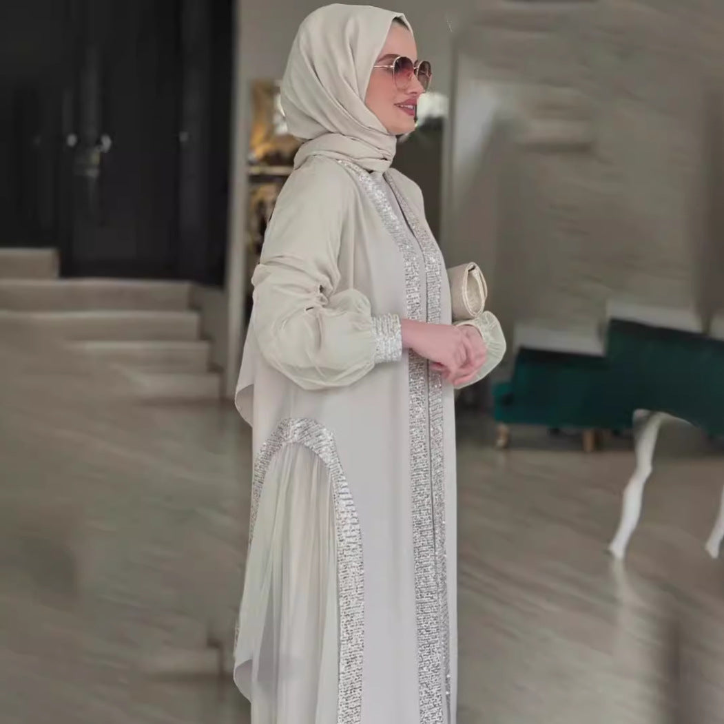 Solid Color Long Sleeve Loose Hot Drilling Dress