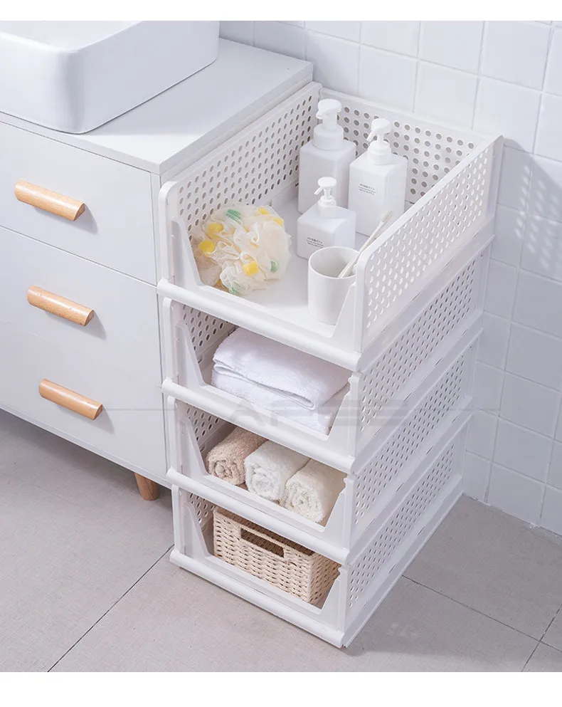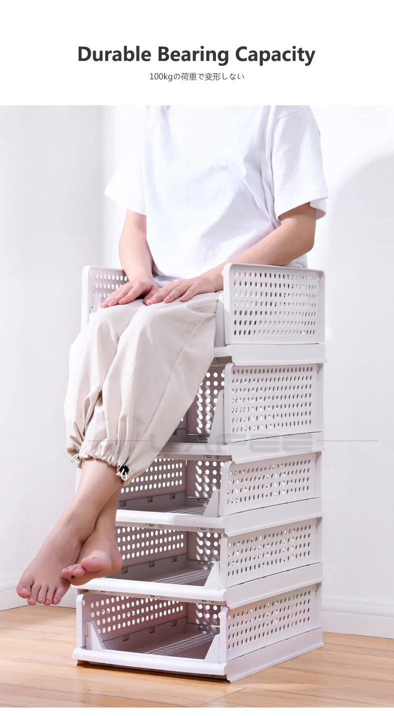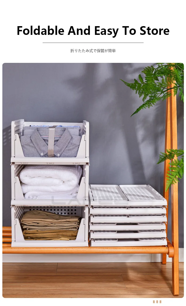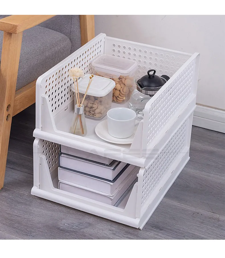 Stackable Folding Storage Rack with Wardrobe Partition Shelf - Organize Clothes, Toys, Books, and More