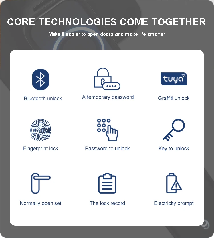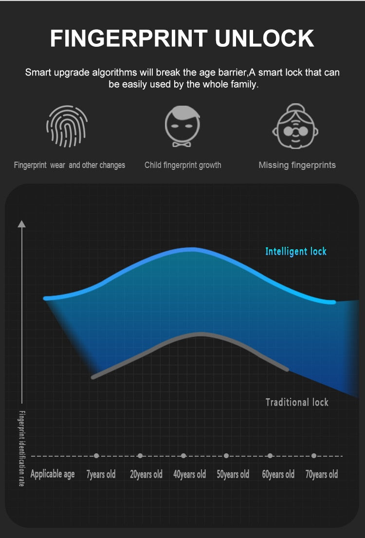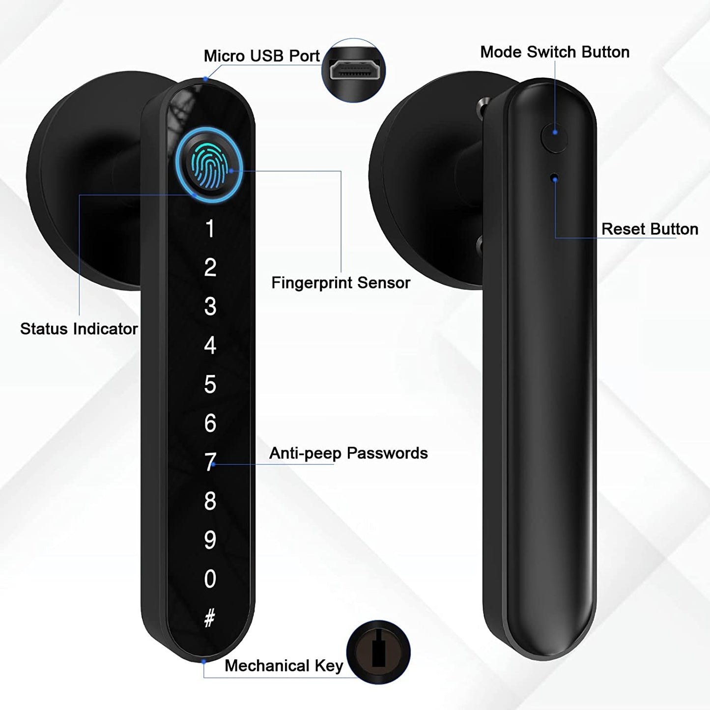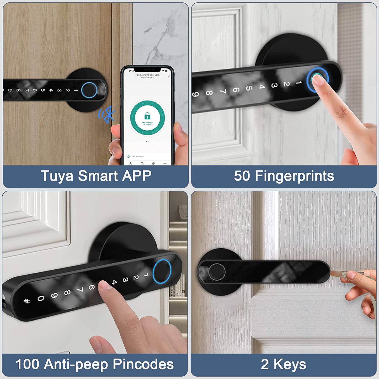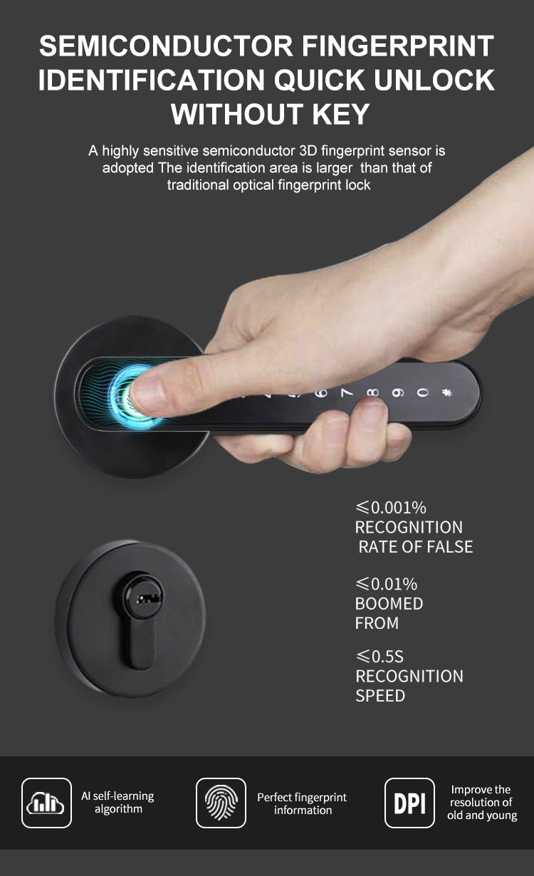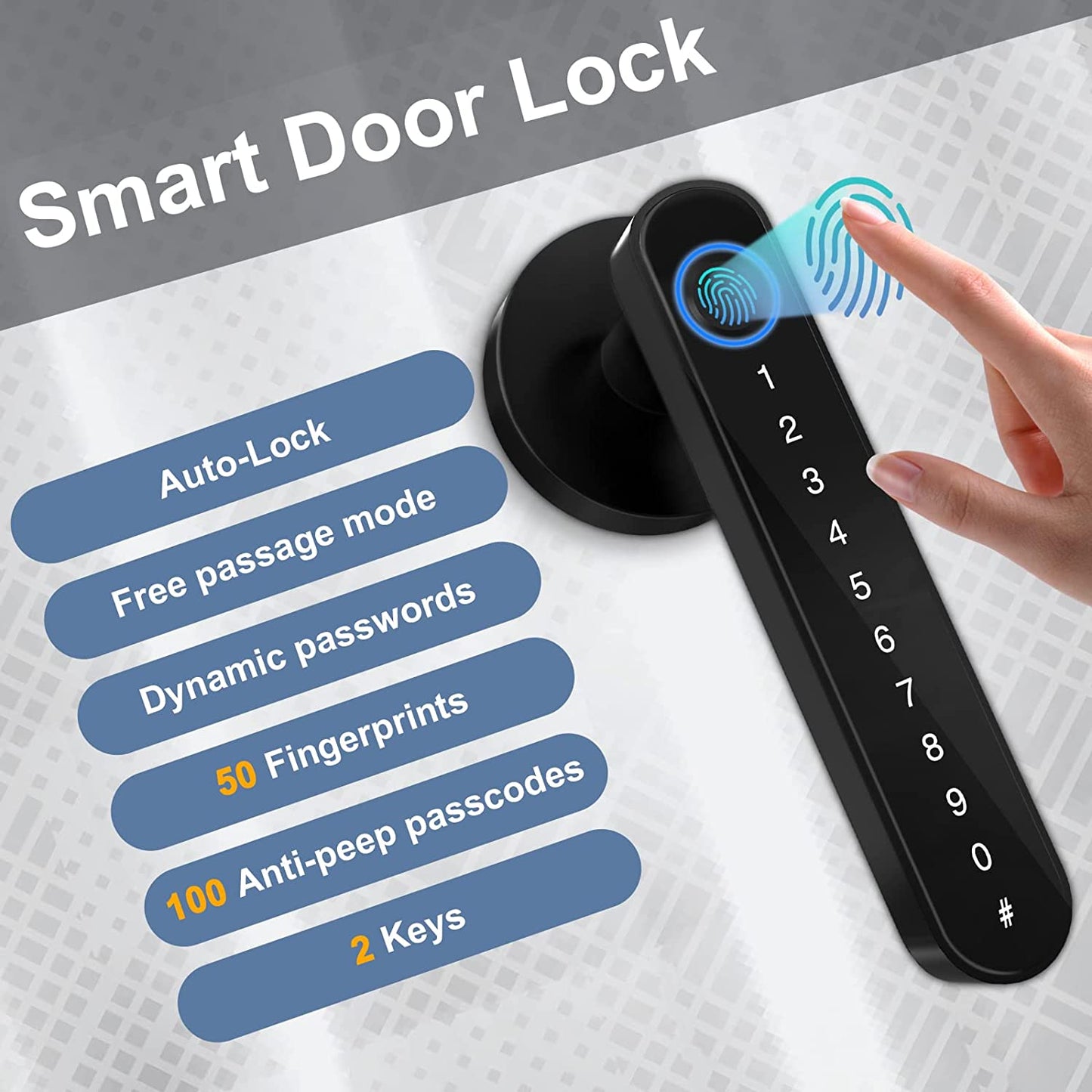 【4 Ways To Unlock】: Door Lock 4-in-1 with fingerprint + password + app + Key(2 include), fingerprint recognition rate up to 99.8%, and open the door just need 1 second. You can add 150 groups of fingerprints, Eliminating the trouble of forgetting to bring the key when you go out.