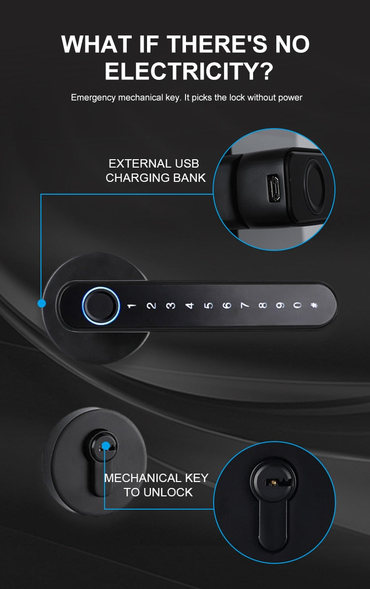 【EMERGENCY CHARGING】: Keypad door knob requires 4 AAA batteries (included), it has a low battery reminder function, equipped with a USB interface for emergency charging.