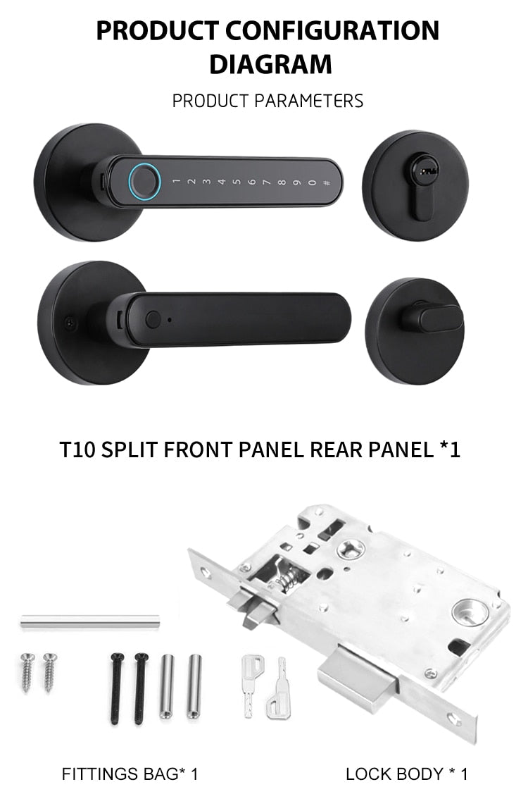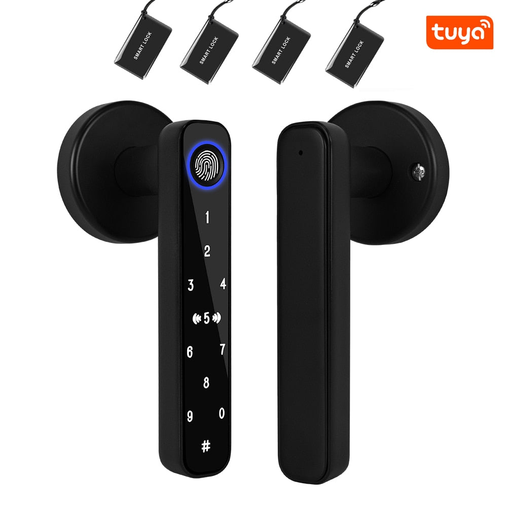 Tuya Biometric Fingerprint Smart Door Lock Password Electronic Digital Lock Keyless Entry Door Knobs Lock for Bedroom Home