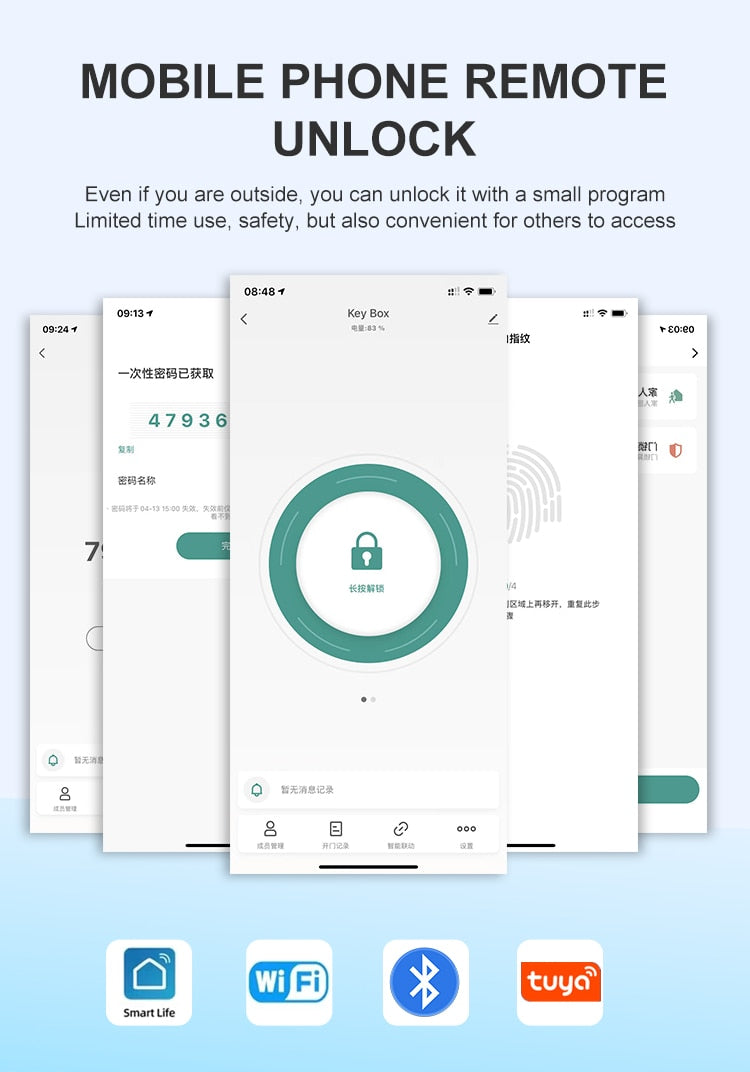 Ways To Unlock: APP, Bluetooth, Mechanical Keys, Finger Vein Recognition, WIFI, Password, FINGERPRINT
