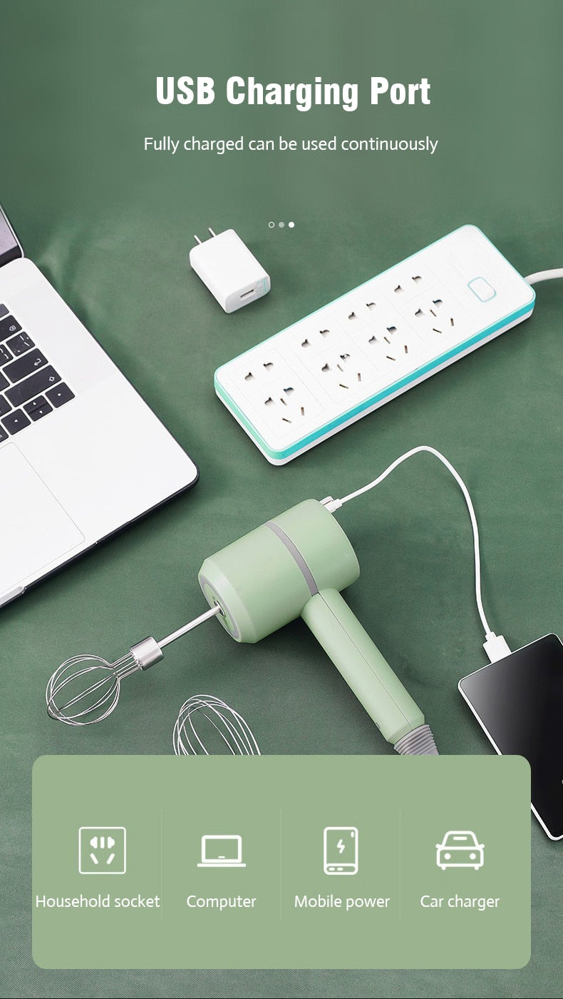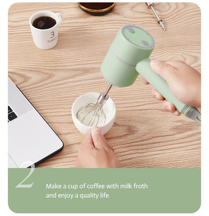 USB 2 In 1 Electric milk frother Garlic Chopper Masher Whisk Egg Beater 3-Speed Mixer Kitchen Handheld Automatic frother foamer