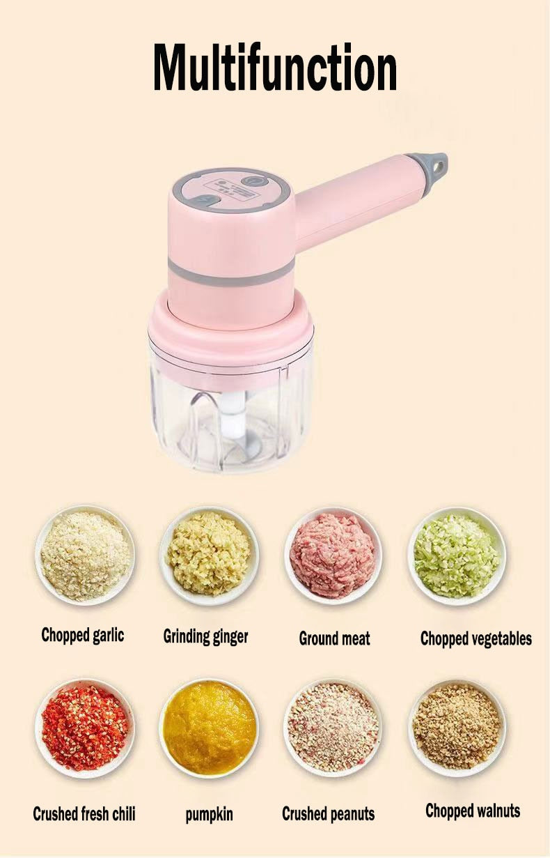 - The machine is dual-purpose, 2 in 1 function, garlic masher and egg beater, 3-speed adjustable, can be processed according to the needs of different ingredients, easy to use, can be ground meat, mashed garlic, beaten eggs.