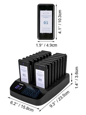 The built-in 3.7V rechargeable battery makes the pager have 24 hours of continuous use after a full charge. 16 charging slots provide power whenever you put the pager on the base, so you don't have to worry about running out of power.
