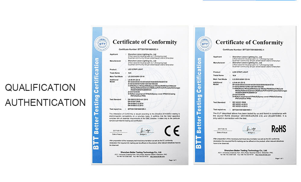 Certification CE and RoHS
