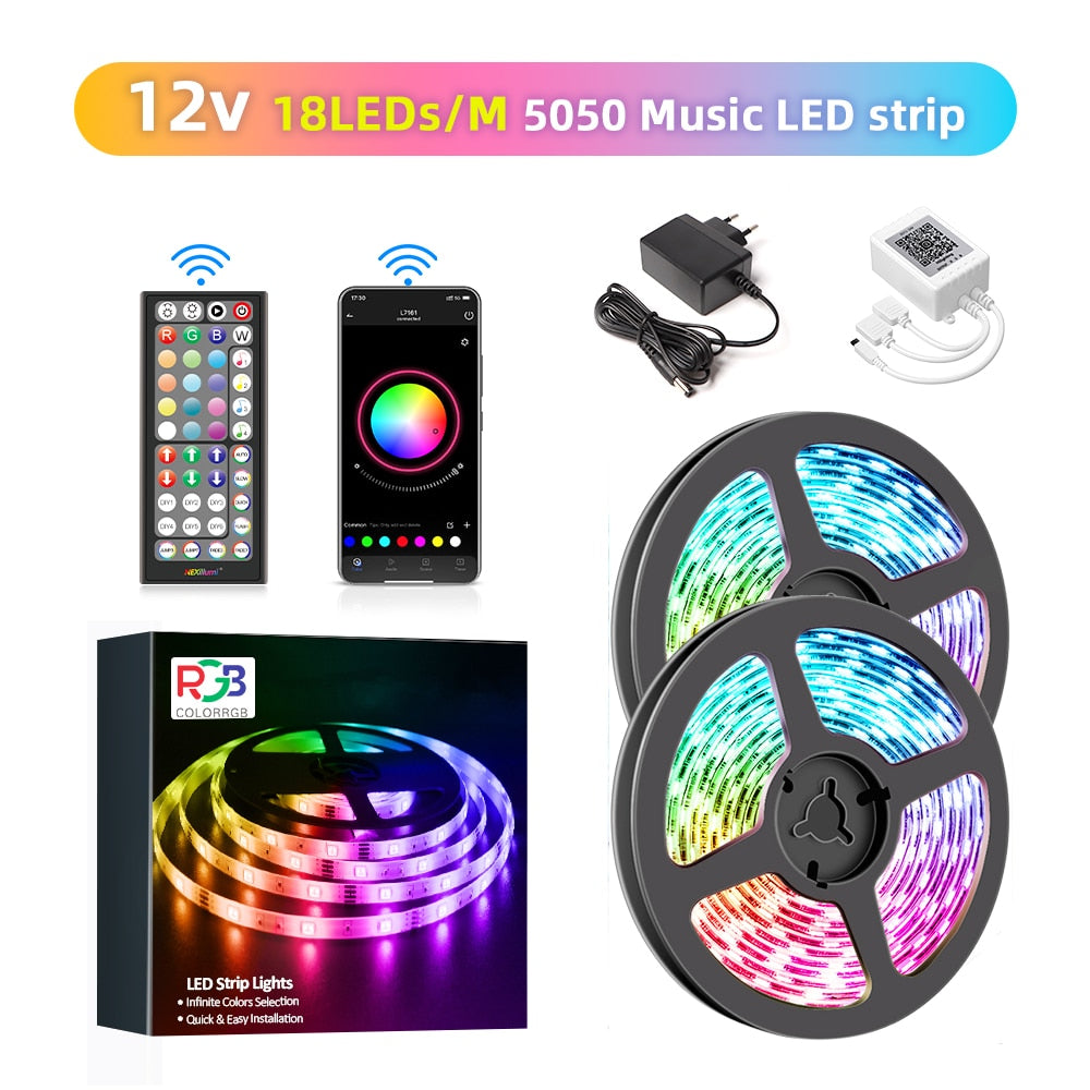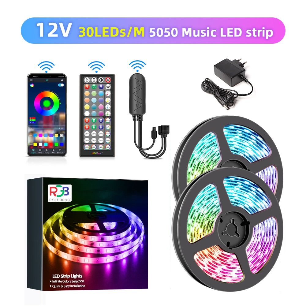 Vibrant DIY RGB LED Strip Light - Create a Stunning Ambiance with a Flexible 5050/SMD3535 Ribbon, Bluetooth Control, and DC 12V Power - Ideal for Christmas Decor and More