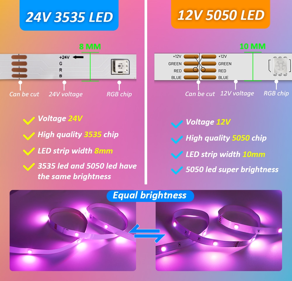 What is the difference between the 5050 and 3535 led strip