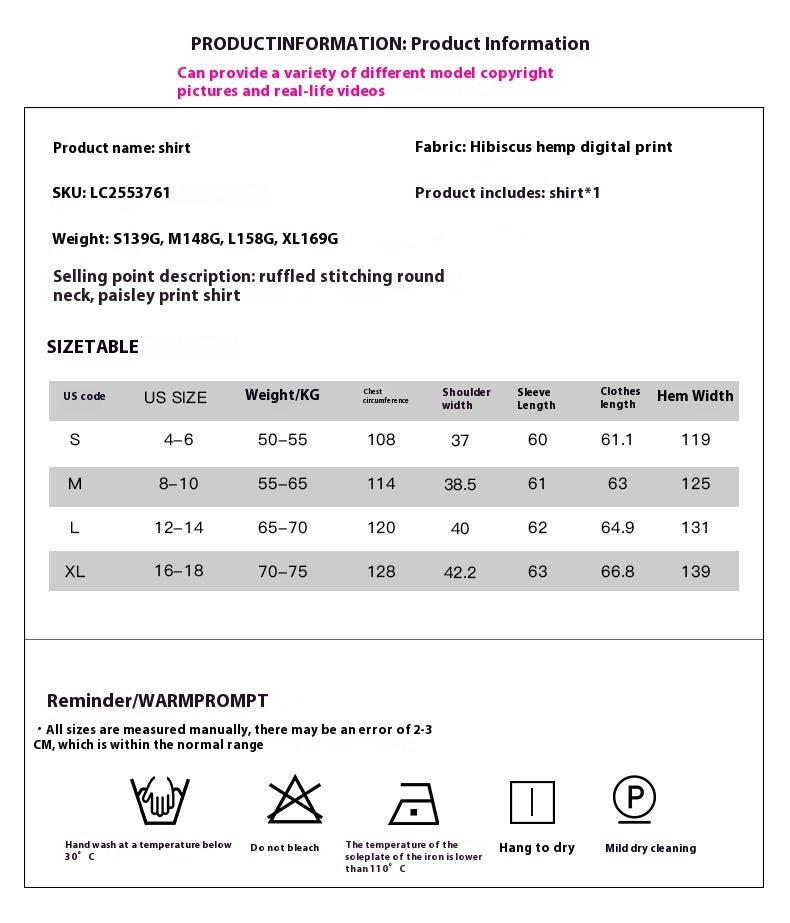 Step into spring and summer with our stunning Women's Thin Bohemian Style Printed Ruffles V-neck Long Sleeve Shirt. This shirt embodies the spirit of bohemian fashion, providing a perfect blend of comfort and style. Crafted from high-quality polyester fabric, it offers a lightweight feel that is perfect for warm weather and is easy to care for.
