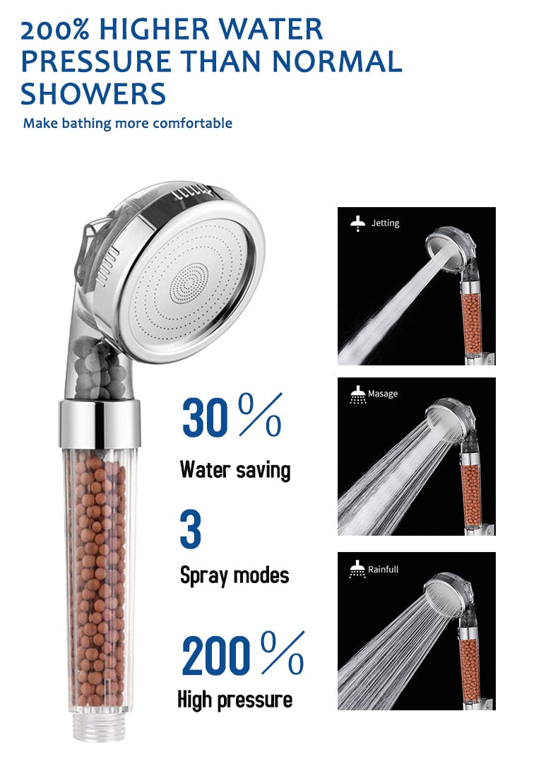 1. Three Shower Modes: Rainfall, Massage, and Jetting & 2-Layer of Filters to get a SPA shower Experience.