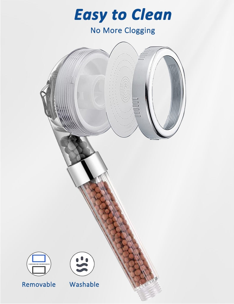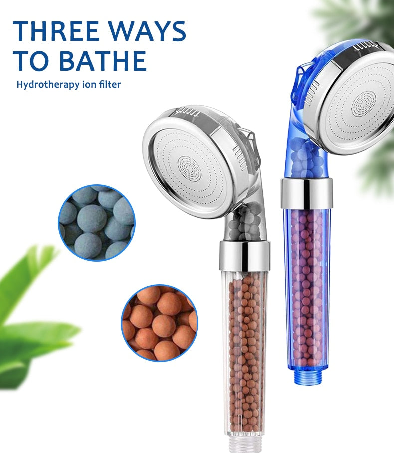ZhangJi 3 Modes Bath Shower Adjustable Jetting Shower Head High-Pressure Saving Water Bathroom Anion Filter Shower SPA Nozzle